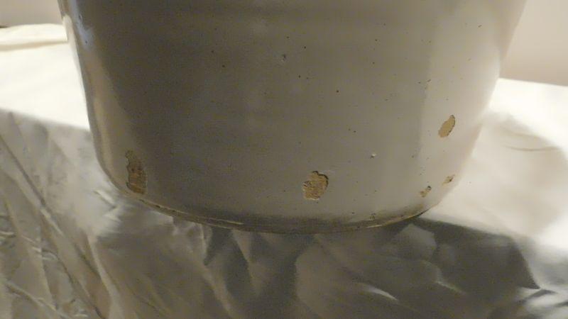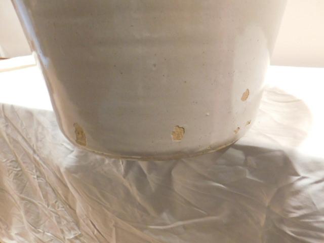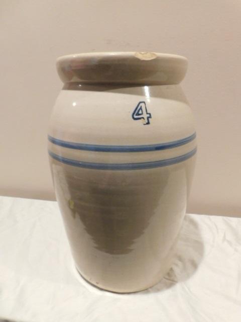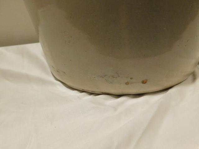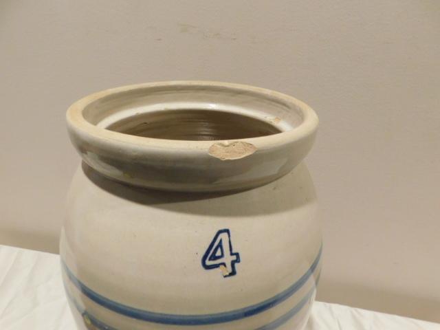 #4 Pottery Crock has chip on lip and crazing around the exterior as shown