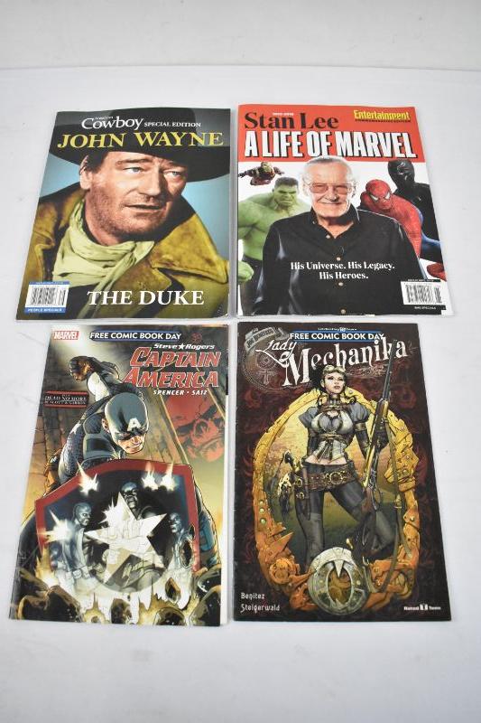 4 Collectible Publications: John Wayne, Stan Lee, Captain America, & Lady Mechanika