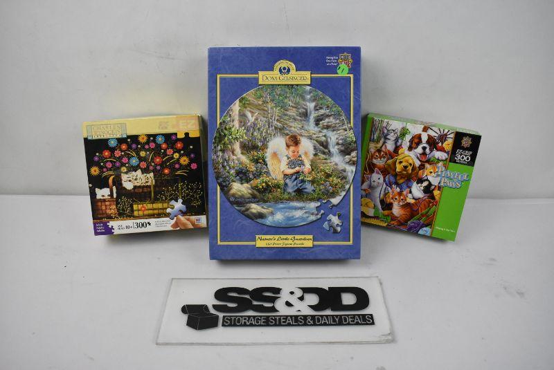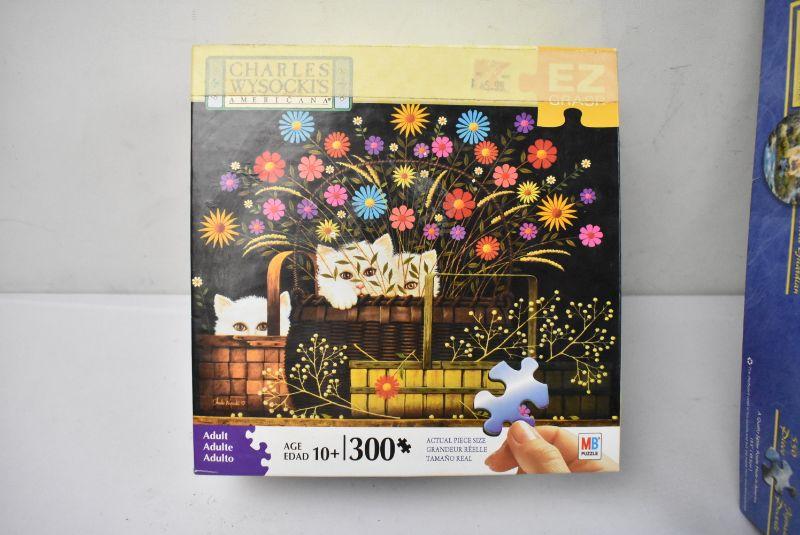 4 Puzzles: Cats, Nature's Guardian, Girl w/ Swan, Pets/Yarn - NOT Part Checked