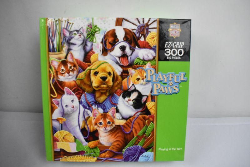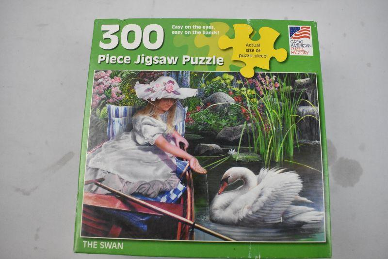 4 Puzzles: Cats, Nature's Little Guardian, and Cats/Dogs/Yarn, Girl w/ Swan - NOT Part Checked