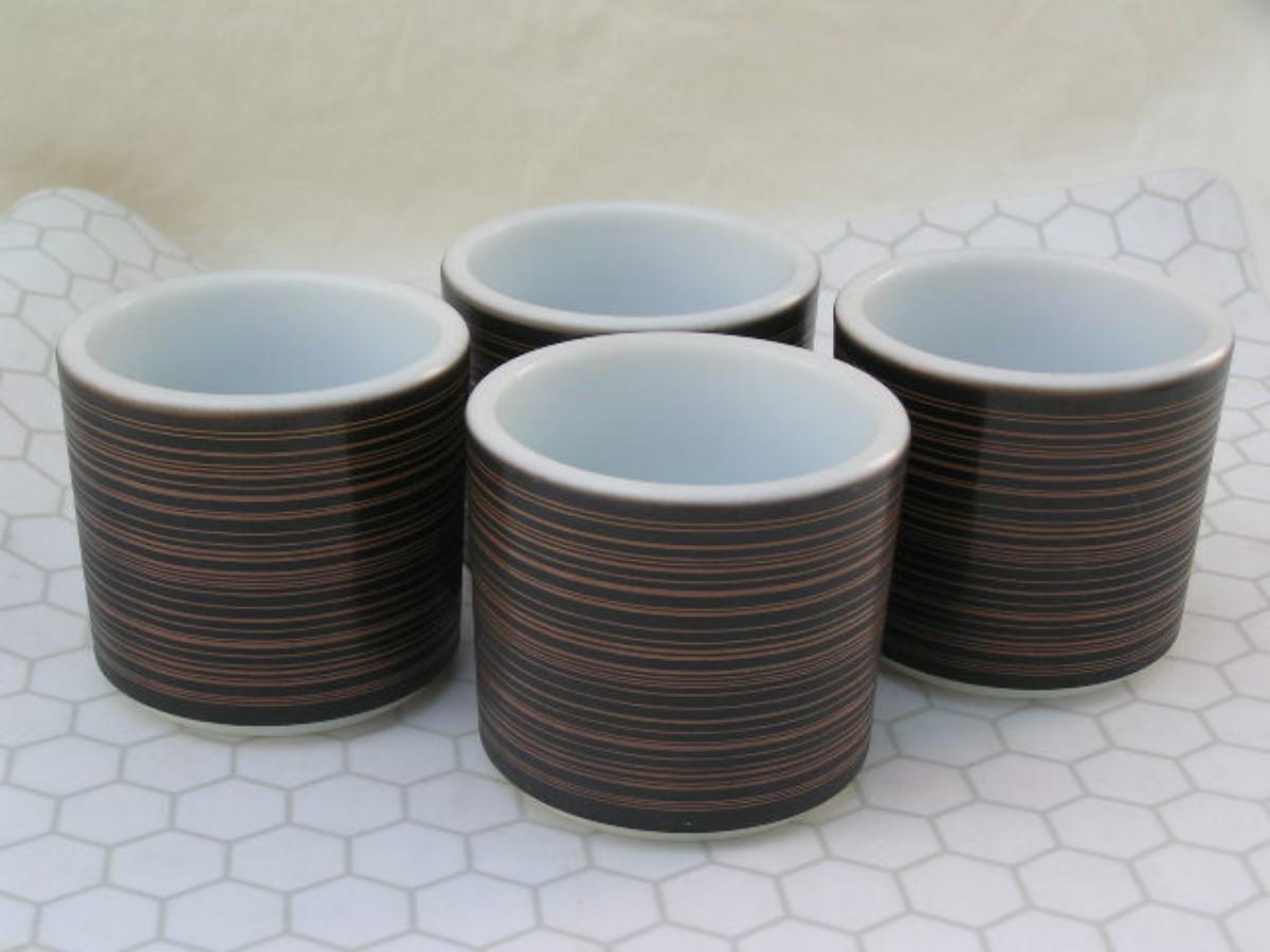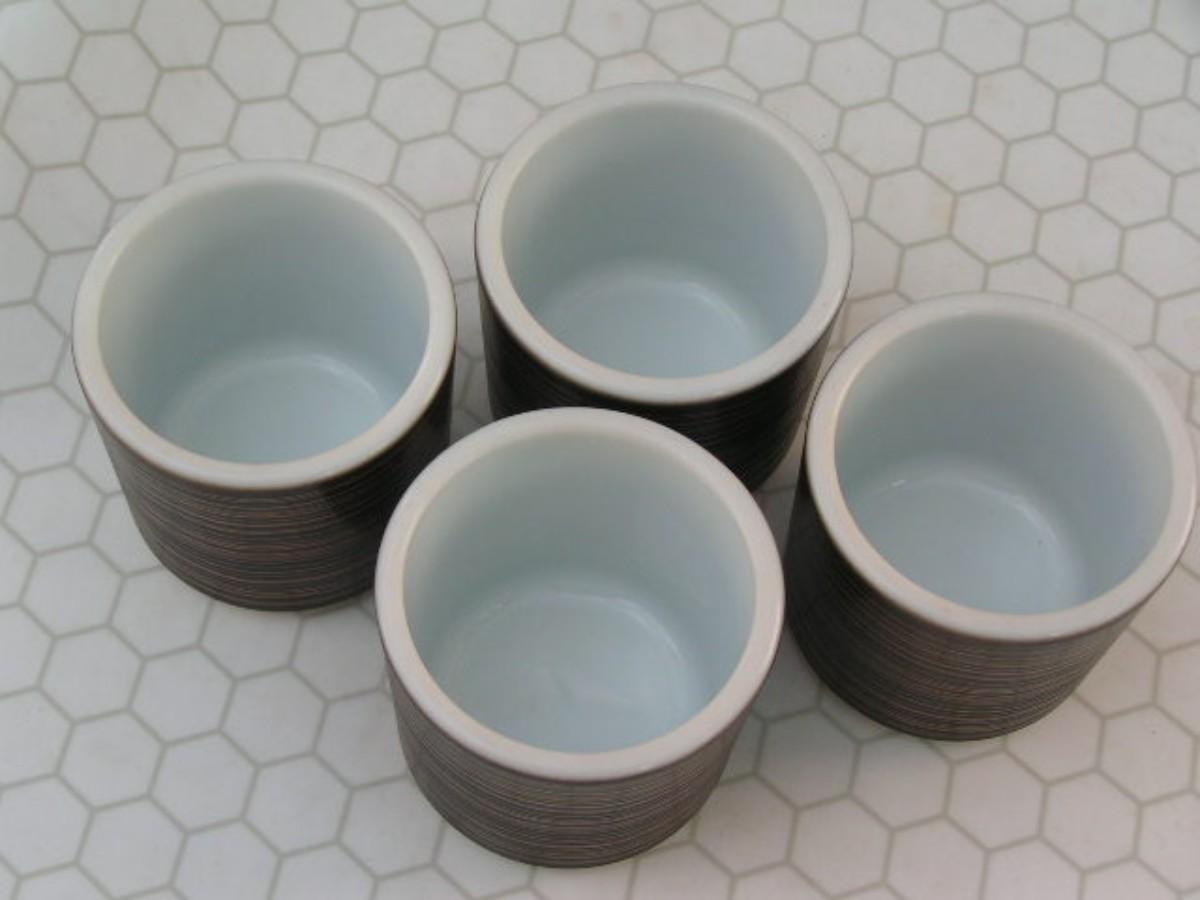Set of 4 Pyrex Ovenware labeled Terra series mugs, maybe 8oz? (w/o handles). Vintage mid century c.1960s. Mint! Very collectible!