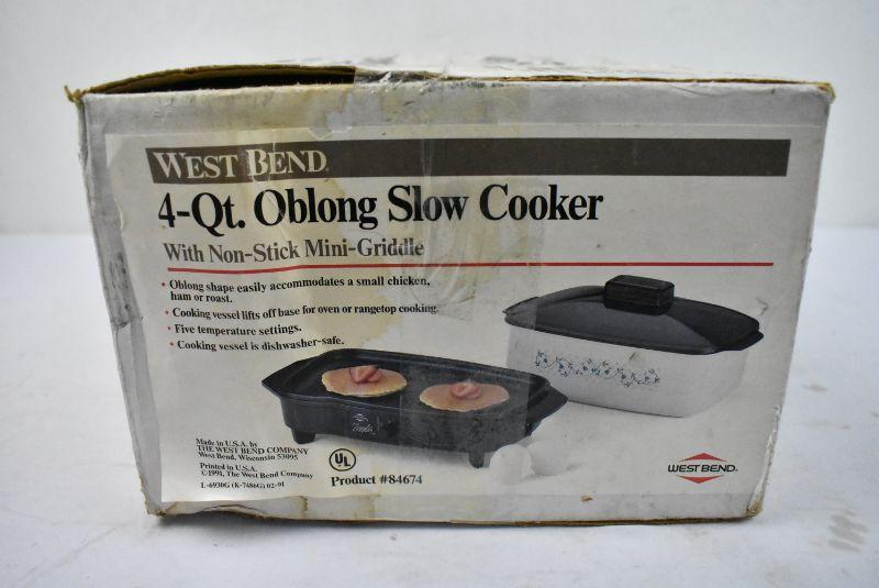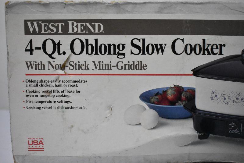 4 Quart Oblong Slow Cooker with Non-Stick Mini-Griddle - Works