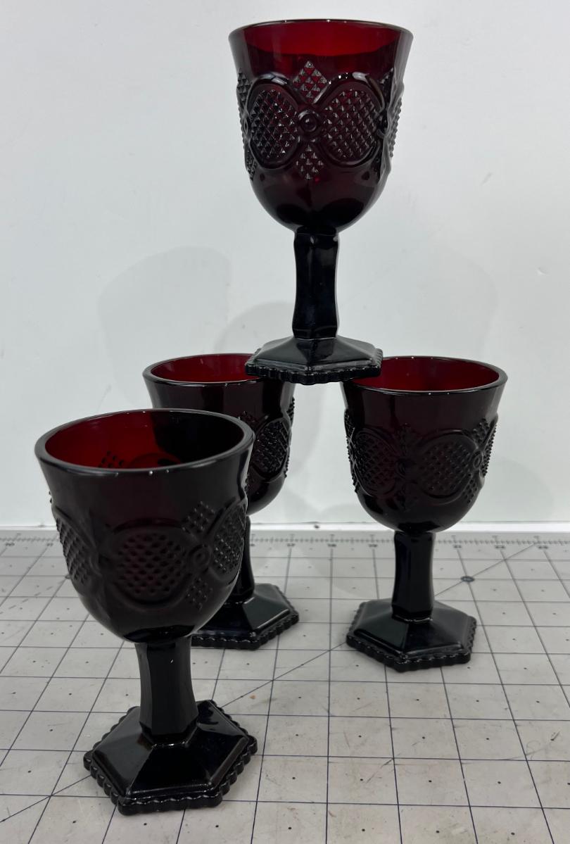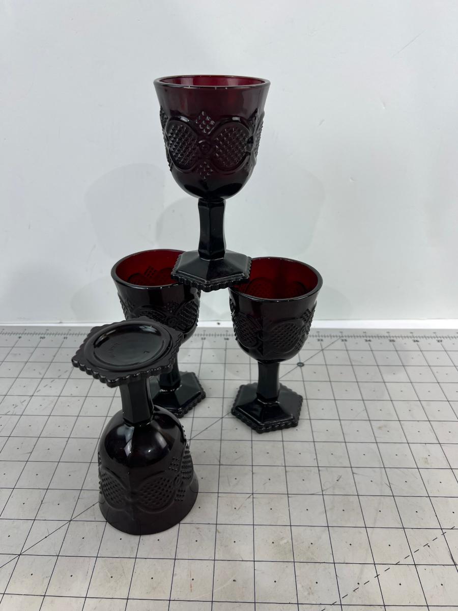 4- Red Glass Cape Cod Wine Glasses