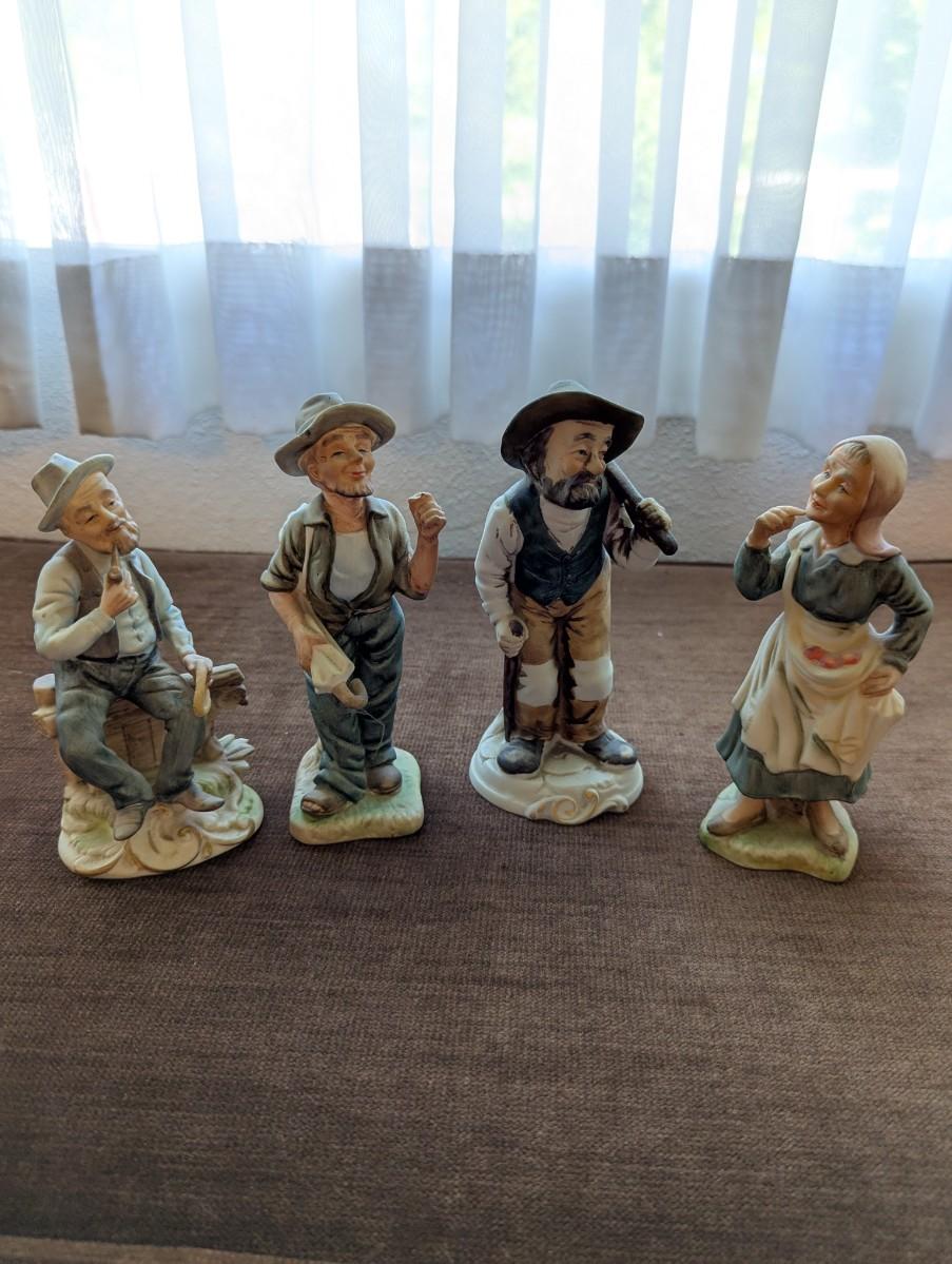 Three men and one woman porcelain statues.