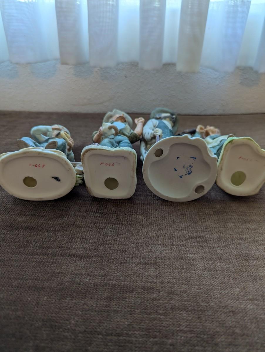 Four porcelain statutes. Please look at the pictures, and you'll notice one is broken,