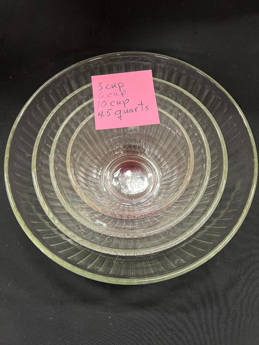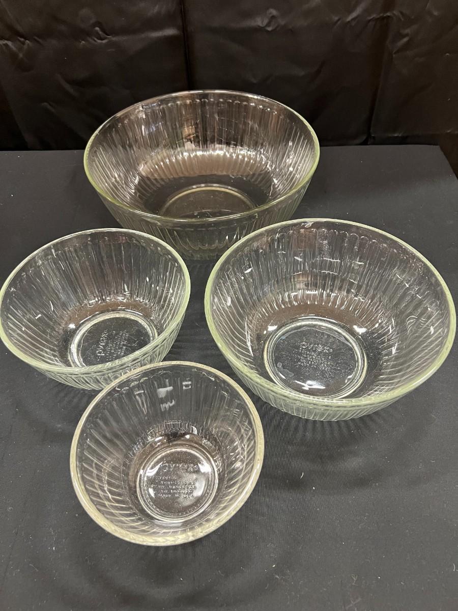 4 RIBBED PYREX NESTING BOWLS