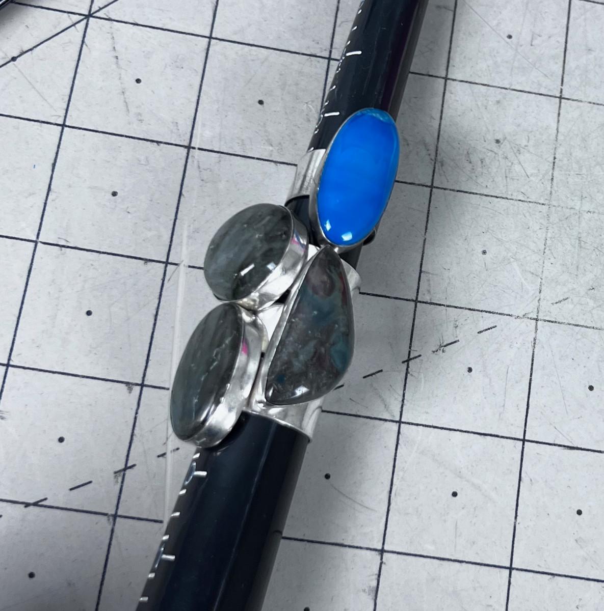4 Rings 2 Laborite and 1 blue Maybe Apatite