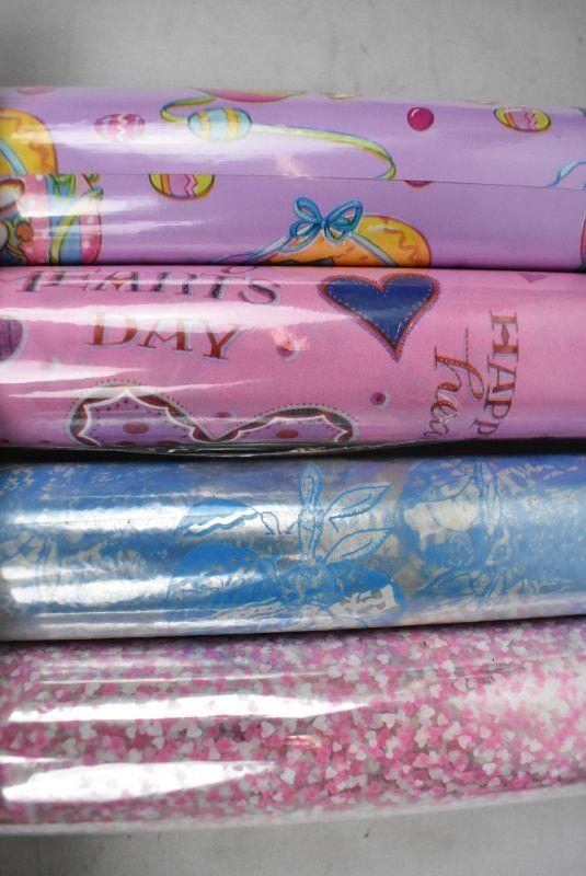 4 Rolls Gift Wrap: 2 Easter 2 Valentine's (2 are paper, 2 are clear plastic) - New