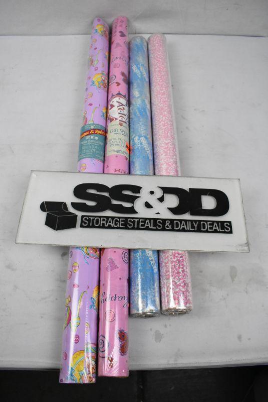 4 Rolls Gift Wrap: 2 Easter 2 Valentine's (2 paper, 2 clear plastic) - New