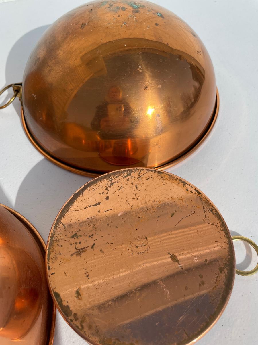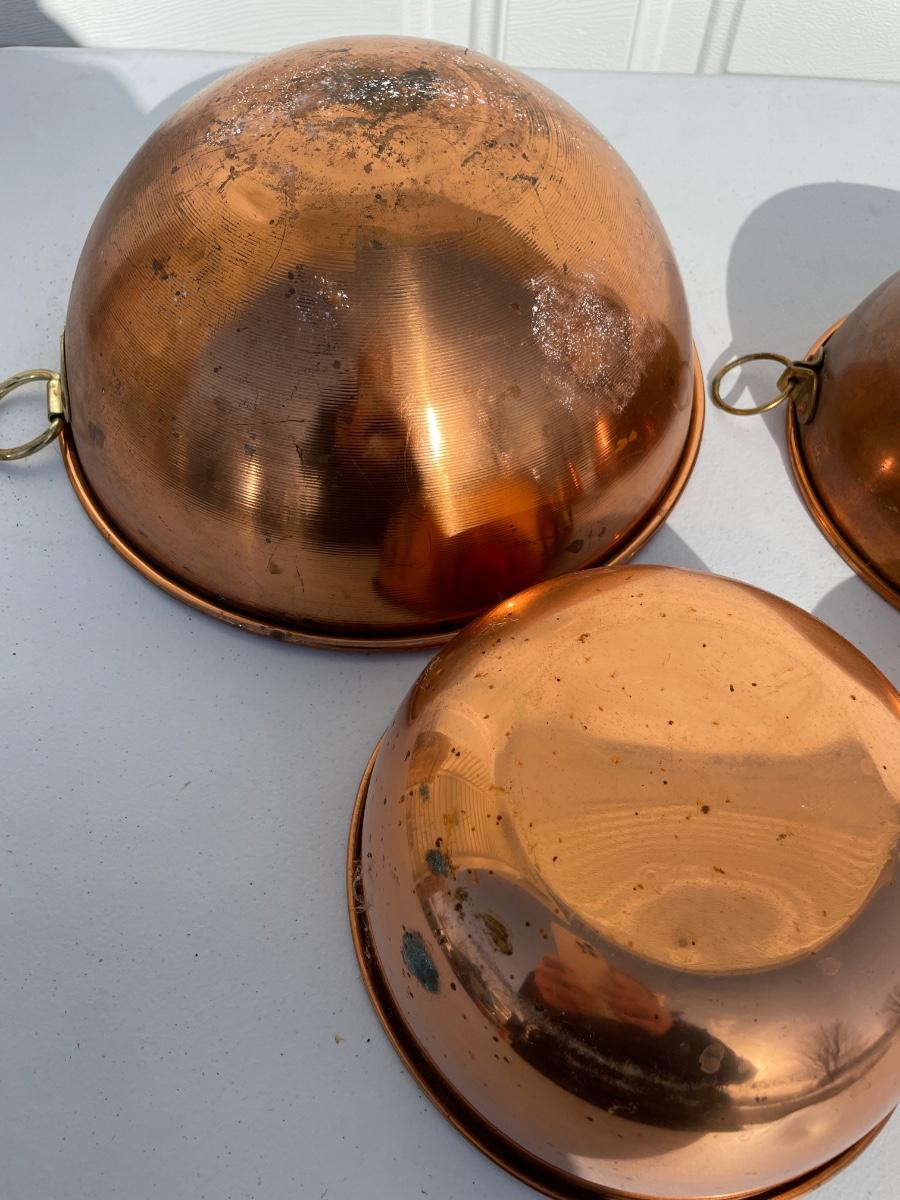 4 round copper bowls