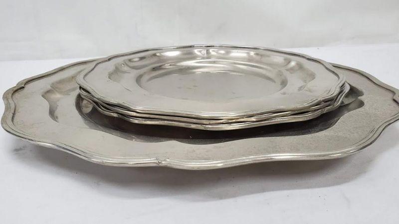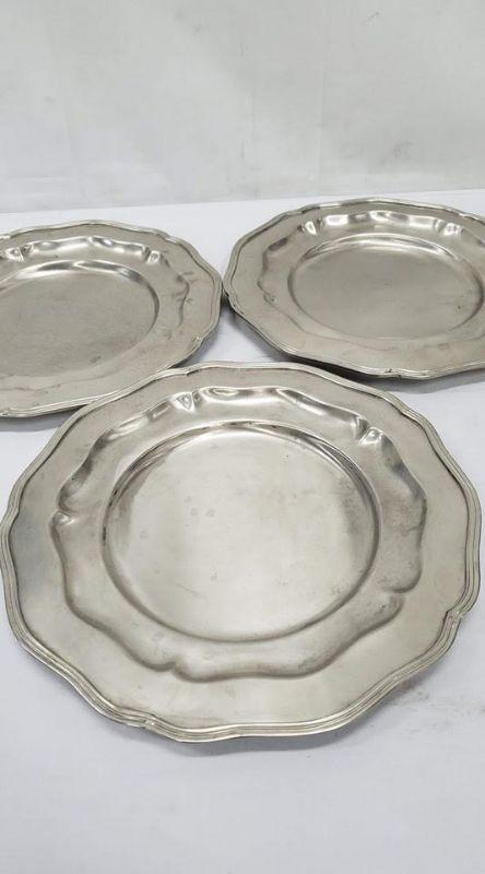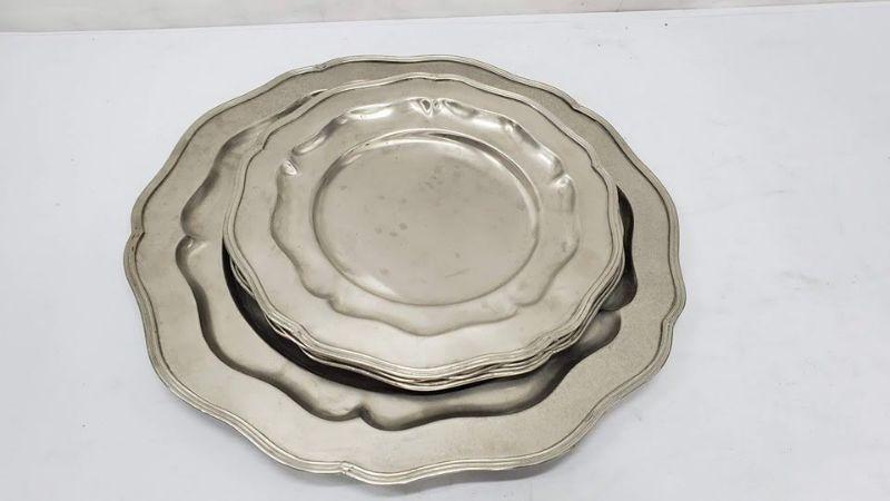4 Round Pewter Platters Round, `1 Large/3 Medium, Queen Anne Pewter