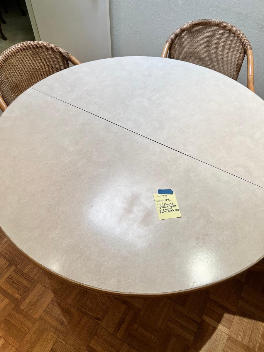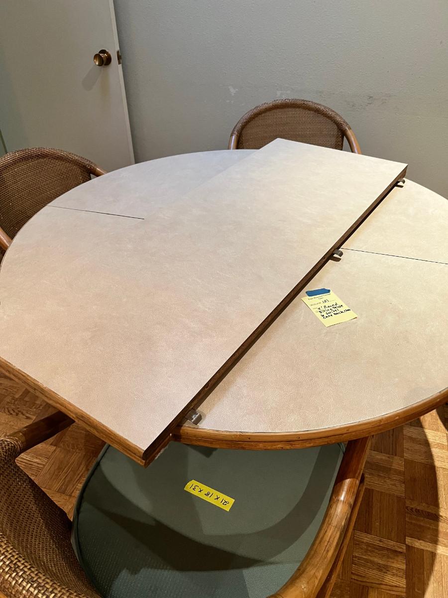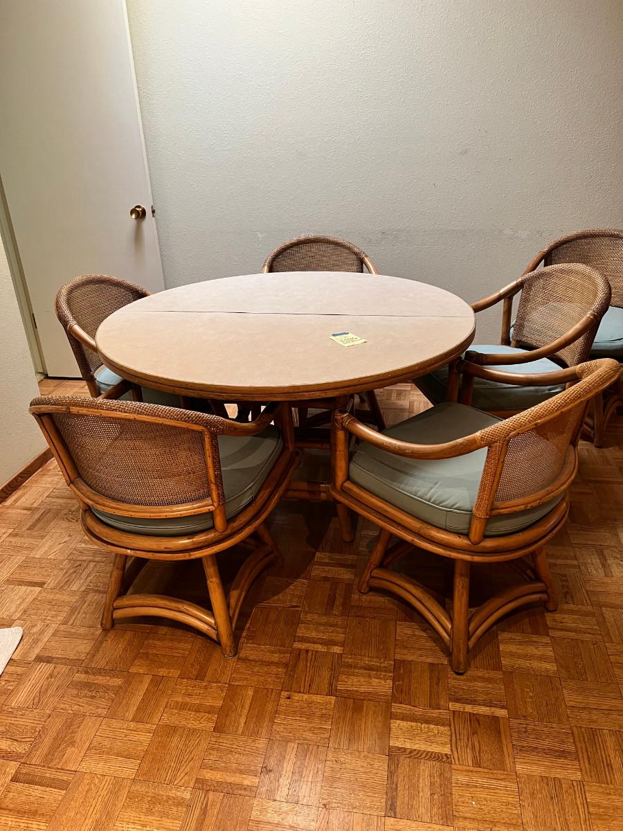 4' Round Ratan table with leaf, 6 Cane back chairs