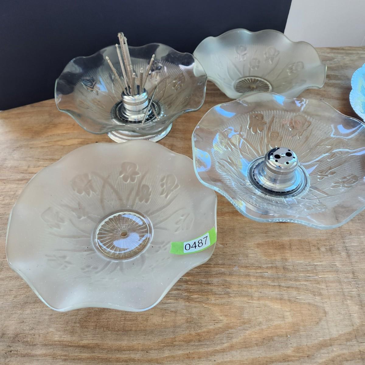 4 Ruffled Iris & herringbone Nut Bowls 2 with Nutcracker holders