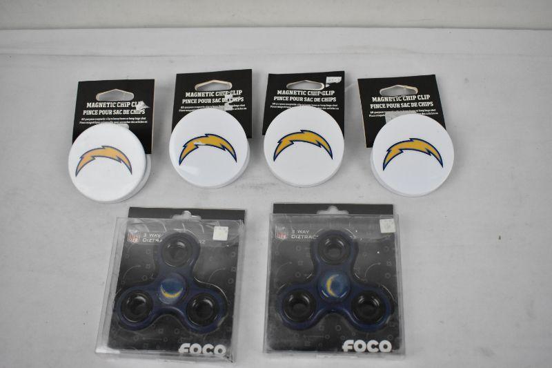 4 San Diego Chargers Magnetic Chip Clips & Two 3-Way Diztracto Spinnerz - New