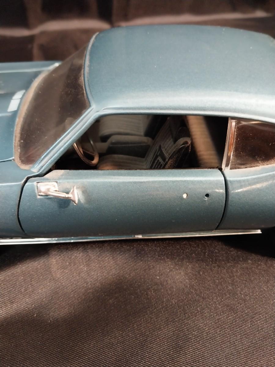 THE CASE MEASURES 16" X 7" X 12", THE DOOR HANDLE IS MISSING ON THE BLUE GTO, ALL OF THE CARS FRONT WHEELS TURN WITH THE STEERING WHEEL. THERE IS A SMALL CHIP ON THE BACK SIDE OF THE DISPLAY CASE (SEE PIC)