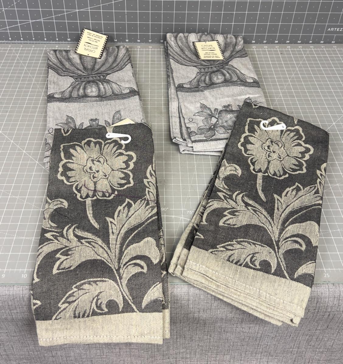 4 Sets of 2 NEW Kitchen Floral and a Fruit Bowl 8 Total, GRAY