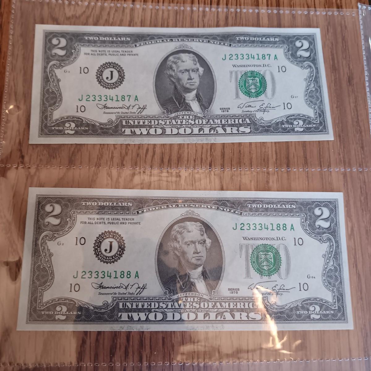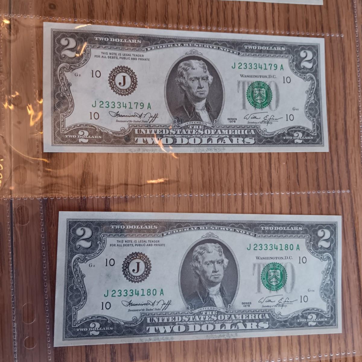 TWELVE SEQUENTIAL 2 DOLLAR BILLS
