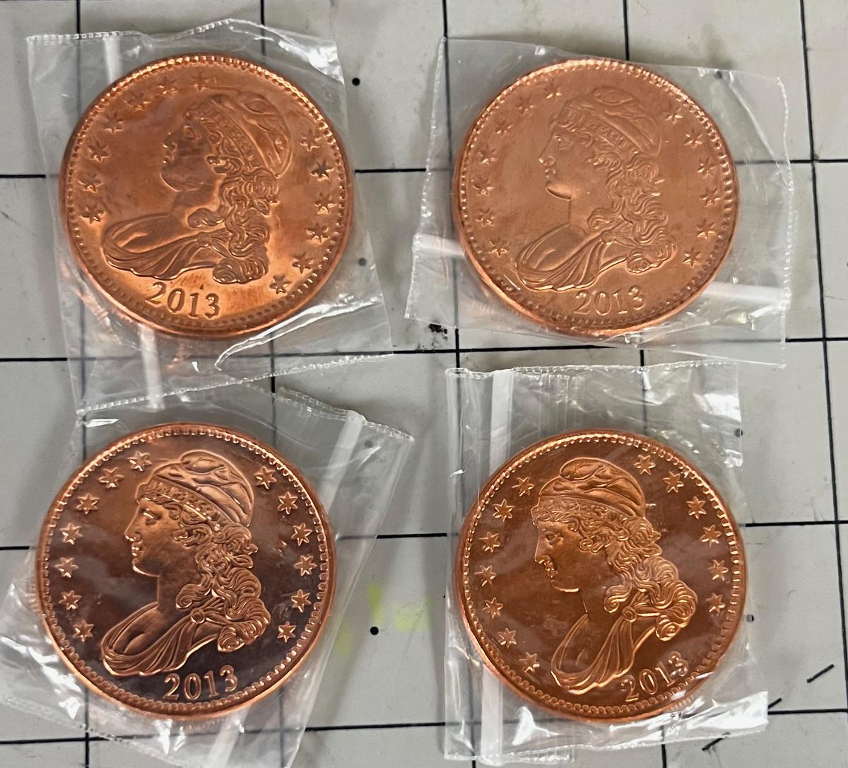 4 sets of 4 COINS - driveaped Bust of 1 ounce Copper