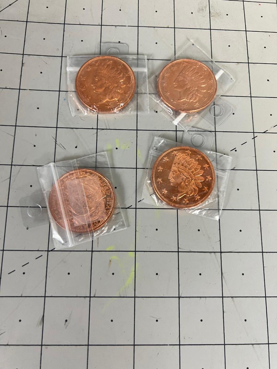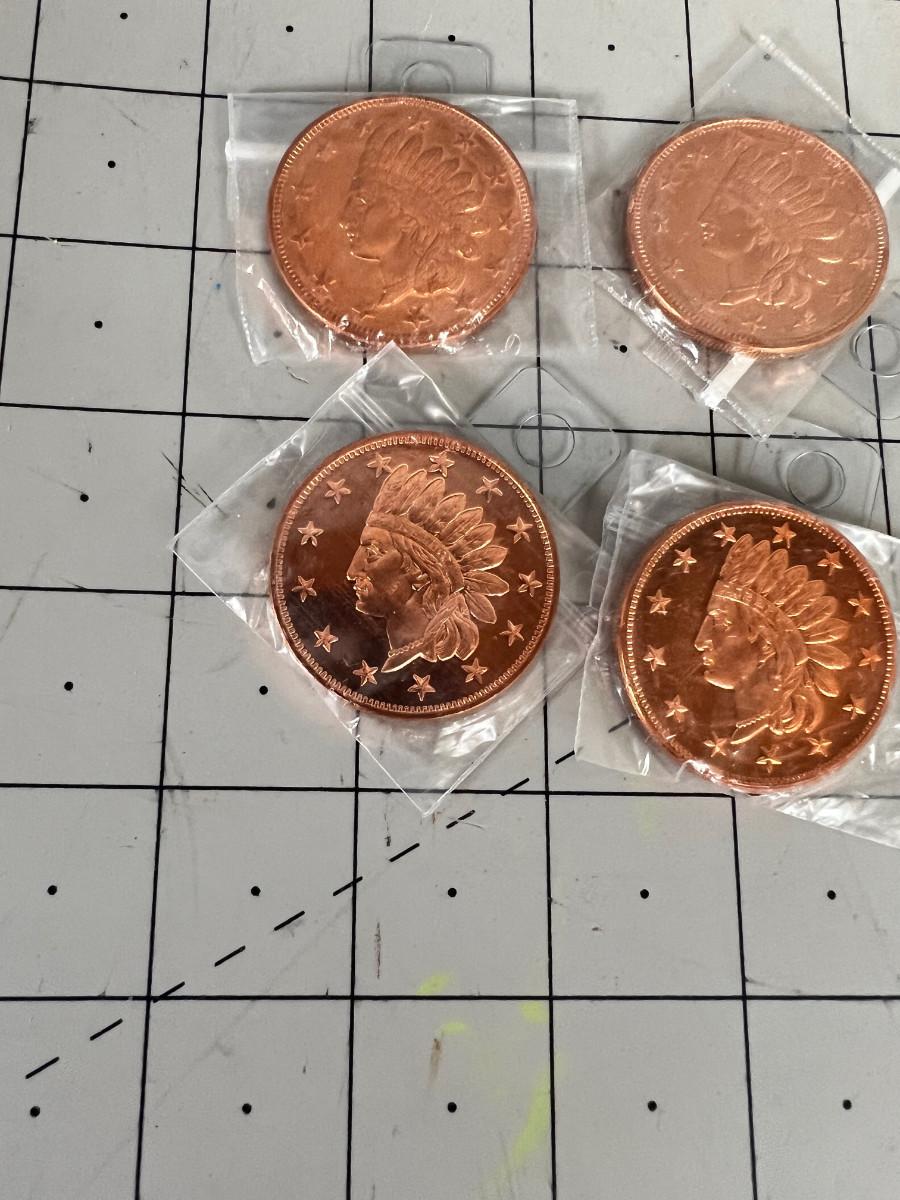 4 sets of 4 COINS - Indian Head  of 1 ounce Copper