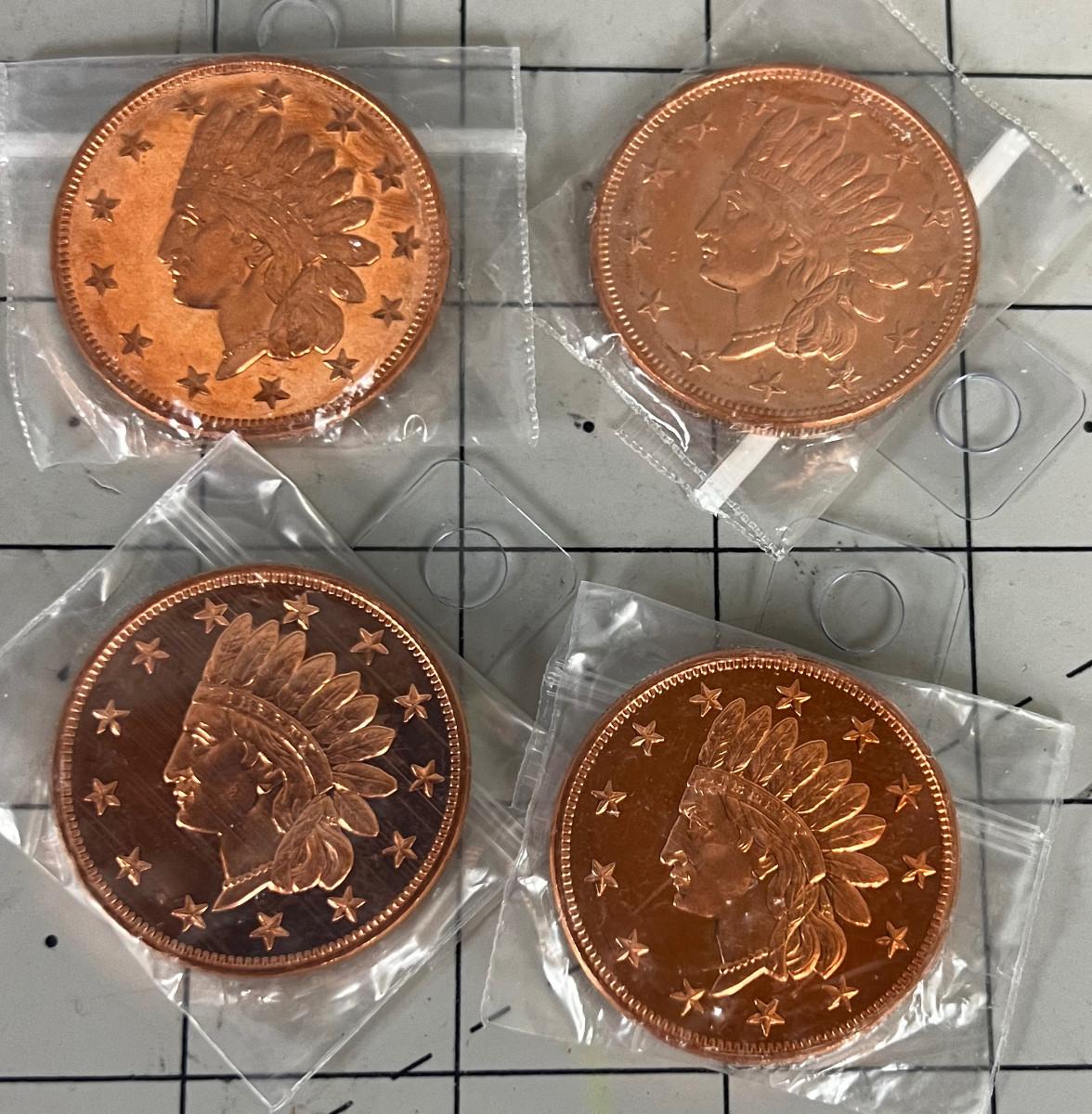 4 sets of 4 COINS - Indian Head of 1 ounce Copper