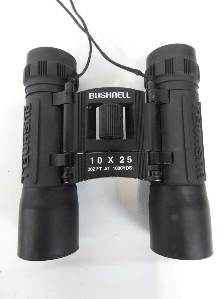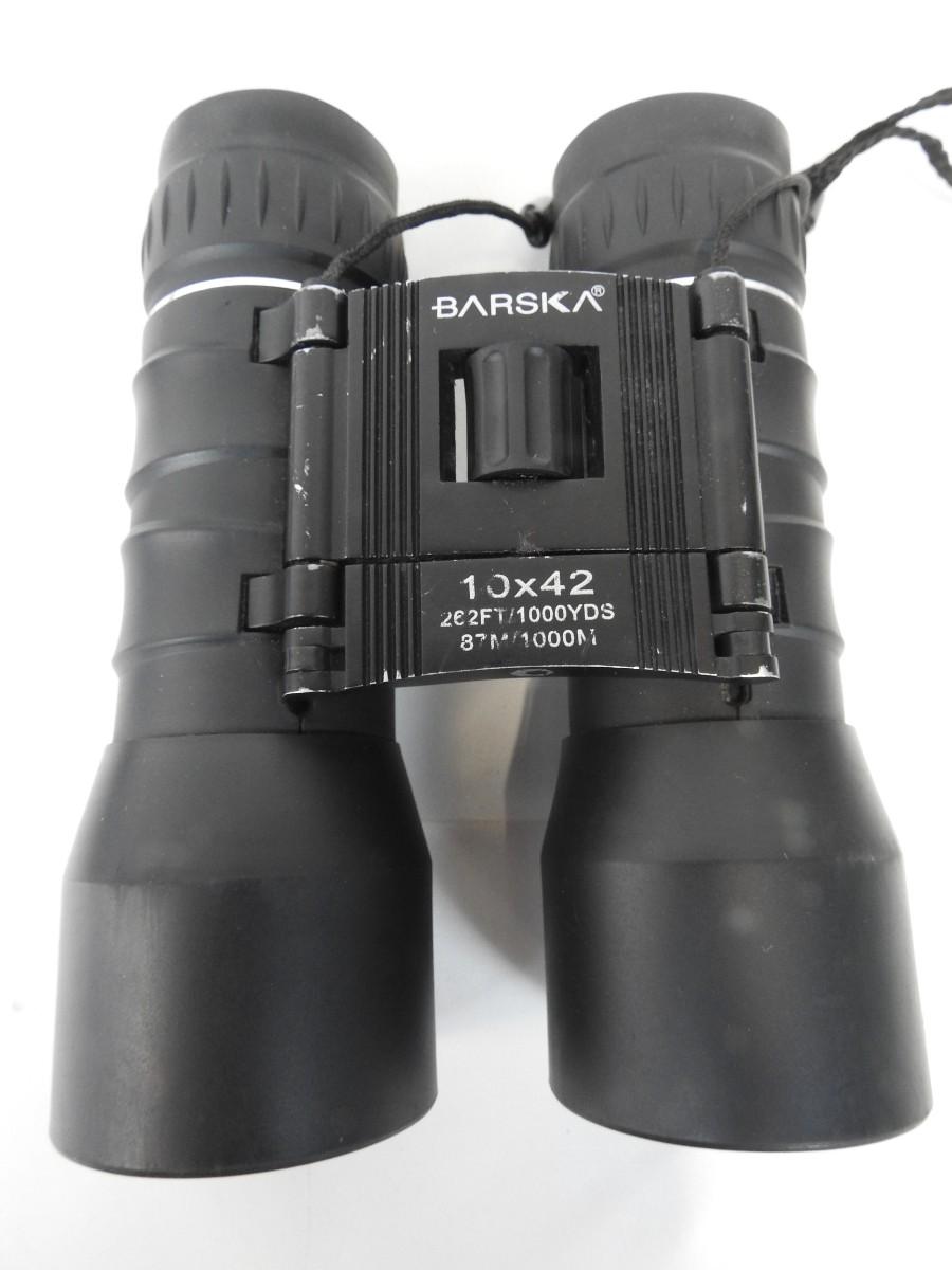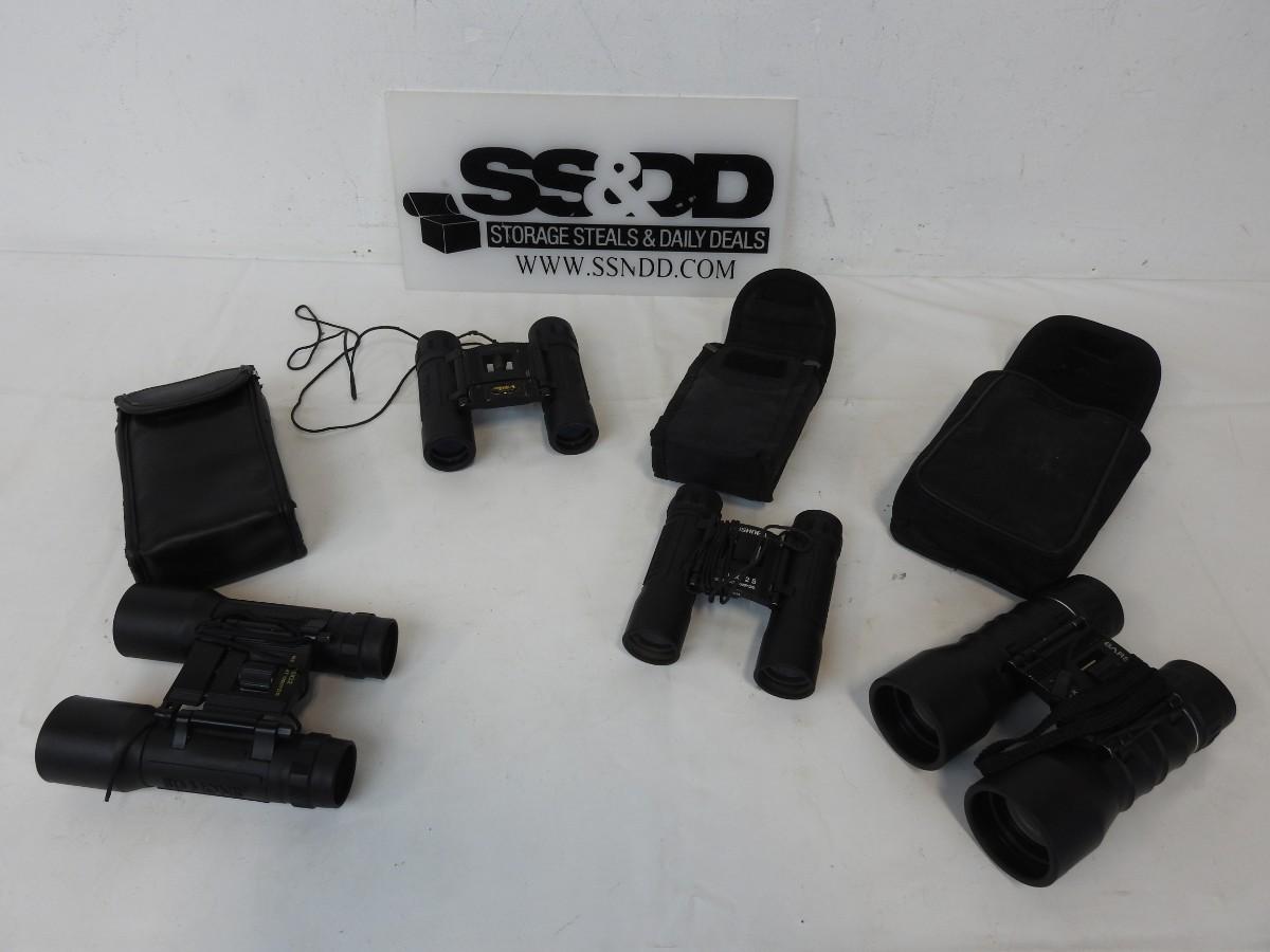 4 Sets of Binoculars, 3 with a case: Simmons, BSA, Bushnell, Barska