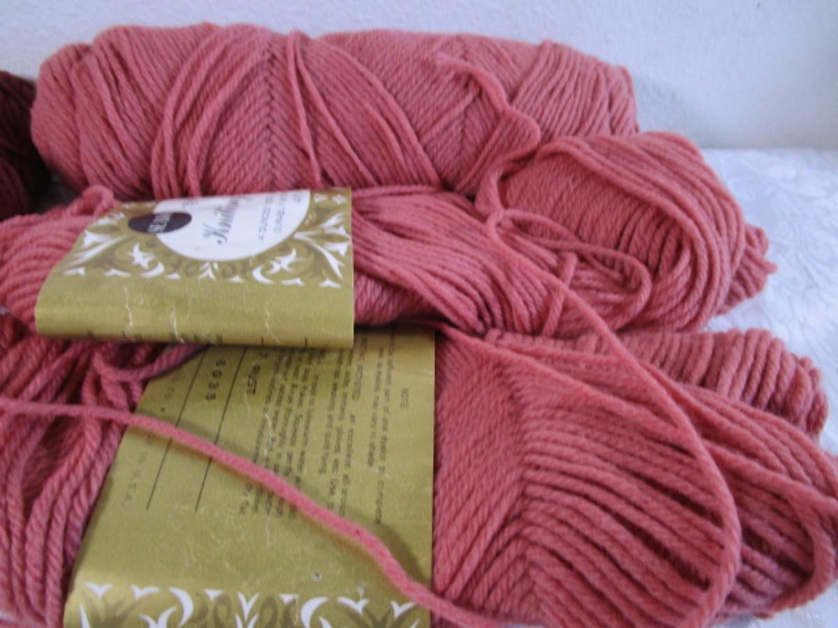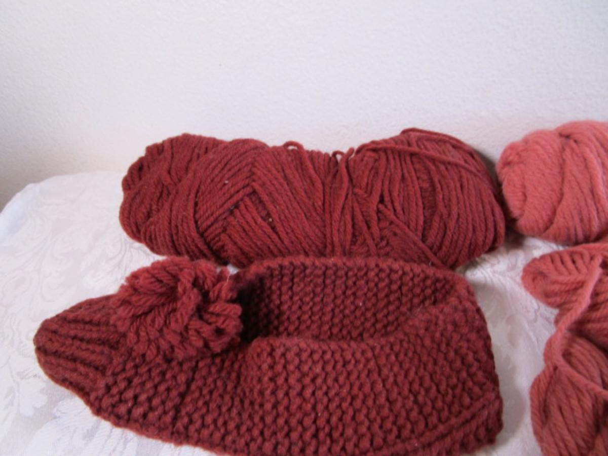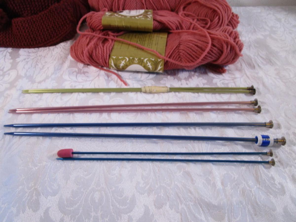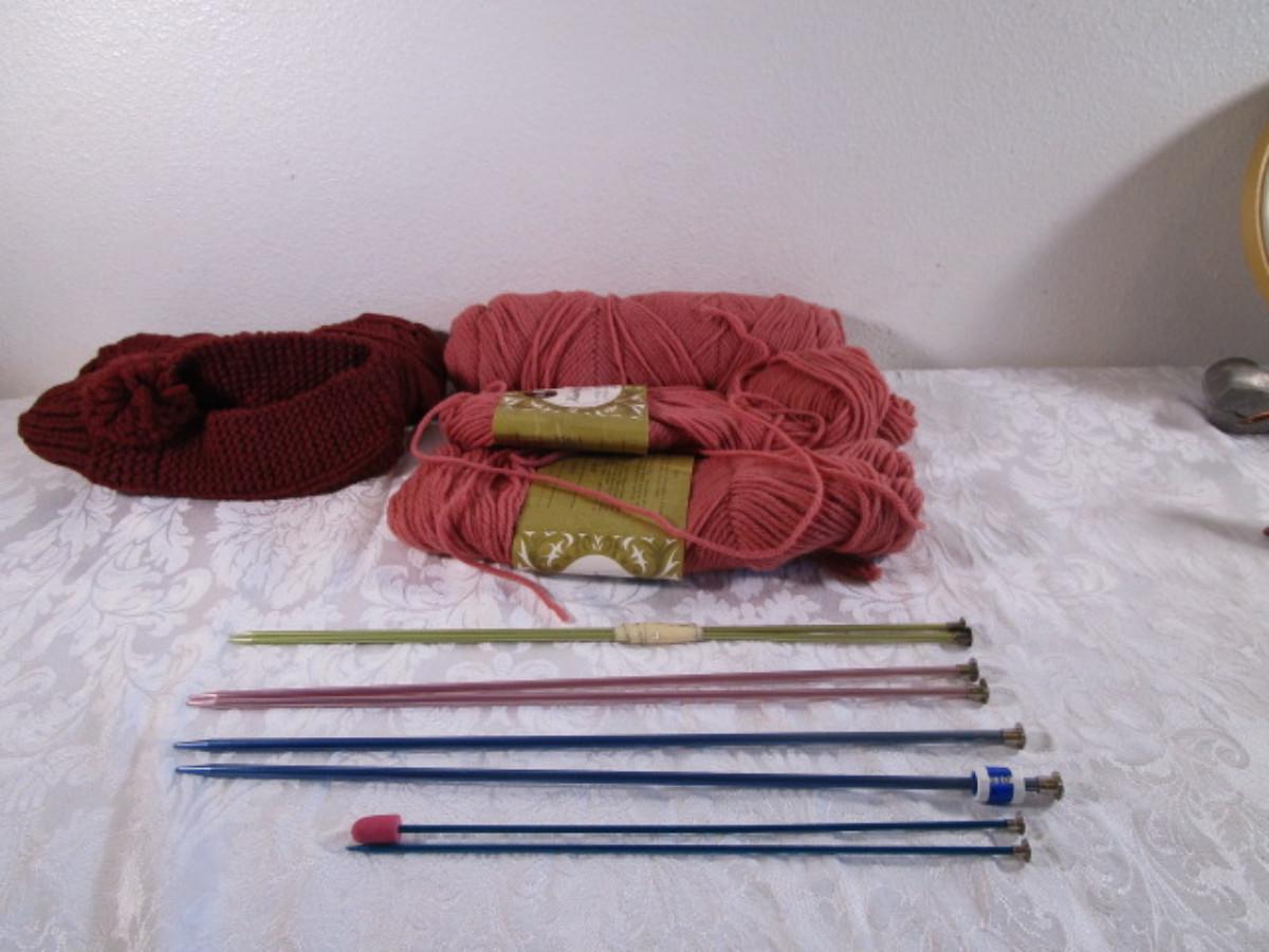 4 sets of knitting needles, yarn