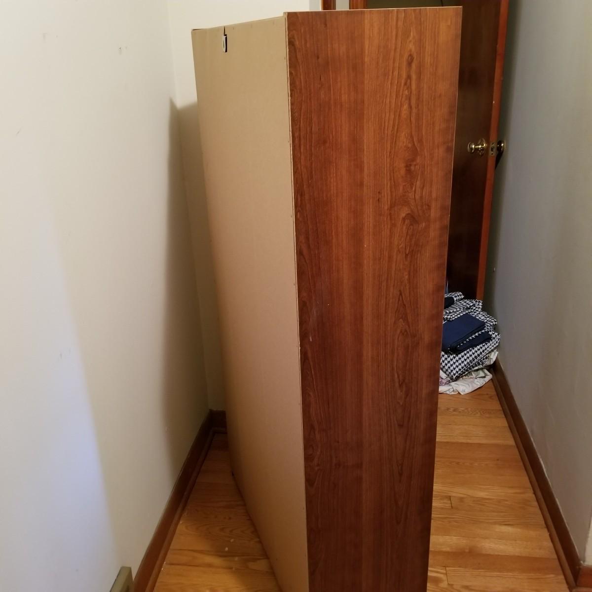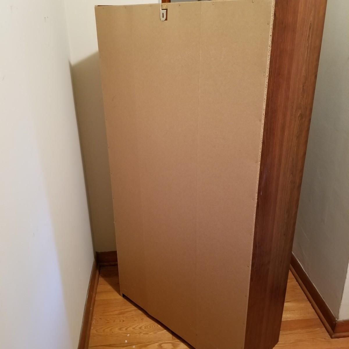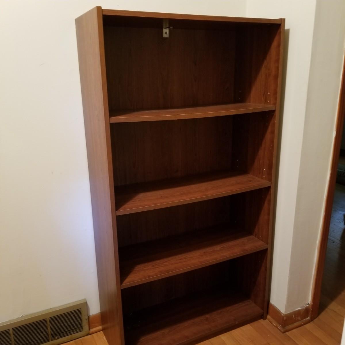 Small bookcase with three adjustable shelves. Measures 29" x 11" x 54". This item is in good condition and is constructed out of particle board. See photos for details. Local pickup only.