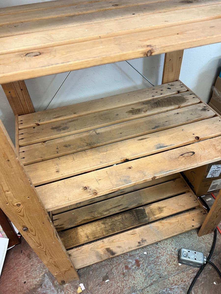 Assembled rack 30 X 57 with some stains on bottom shelf.