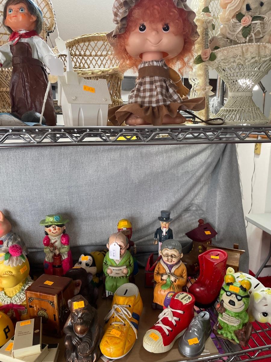 4 shelves of banks & fun!