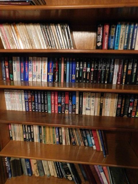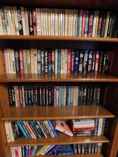 4 Shelves of Paper Back Books Fiction Including Mystery, Crime, Etc