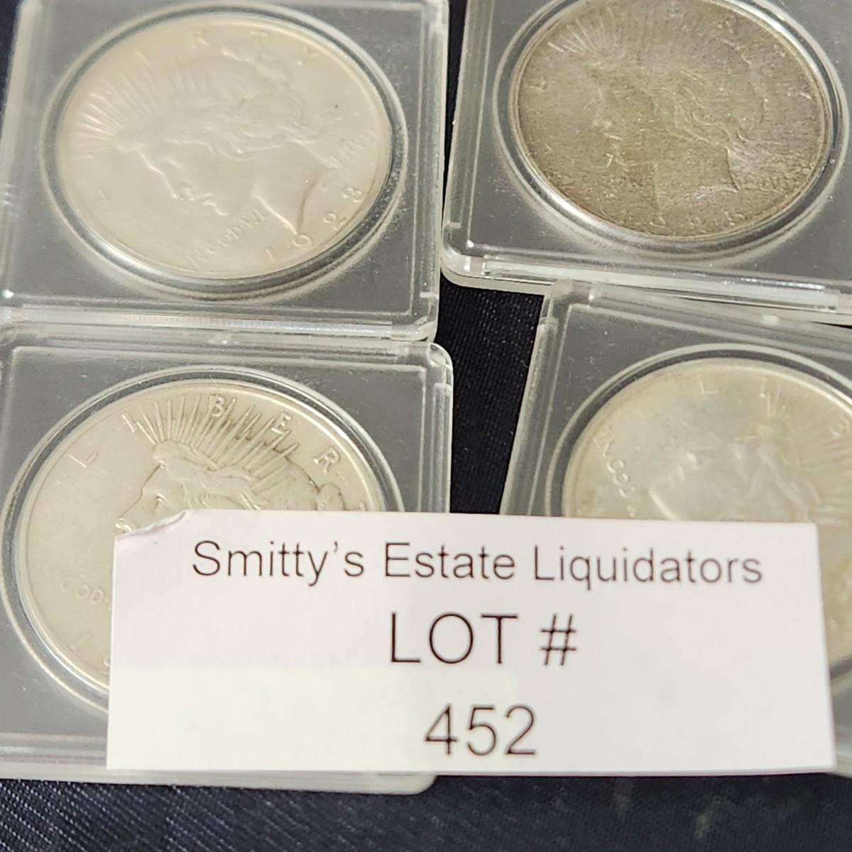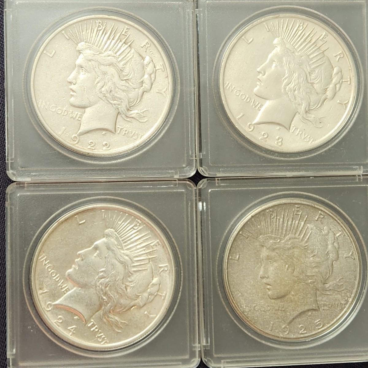 4 Silver Peace Dollars Coins 1922 1923 1924 1925 Lot #452