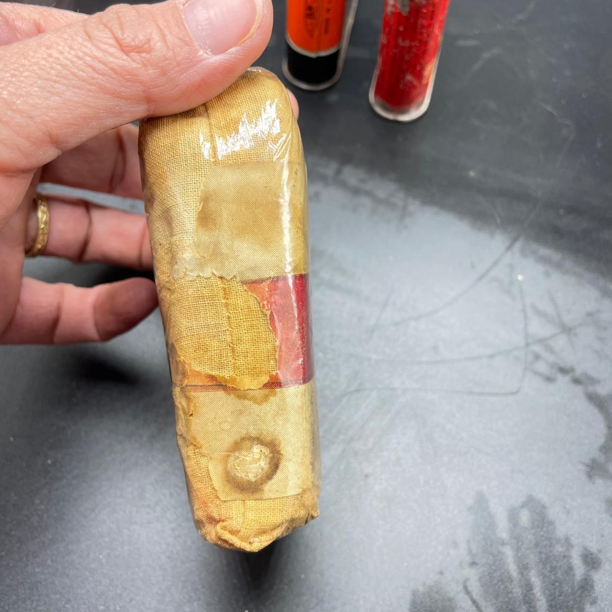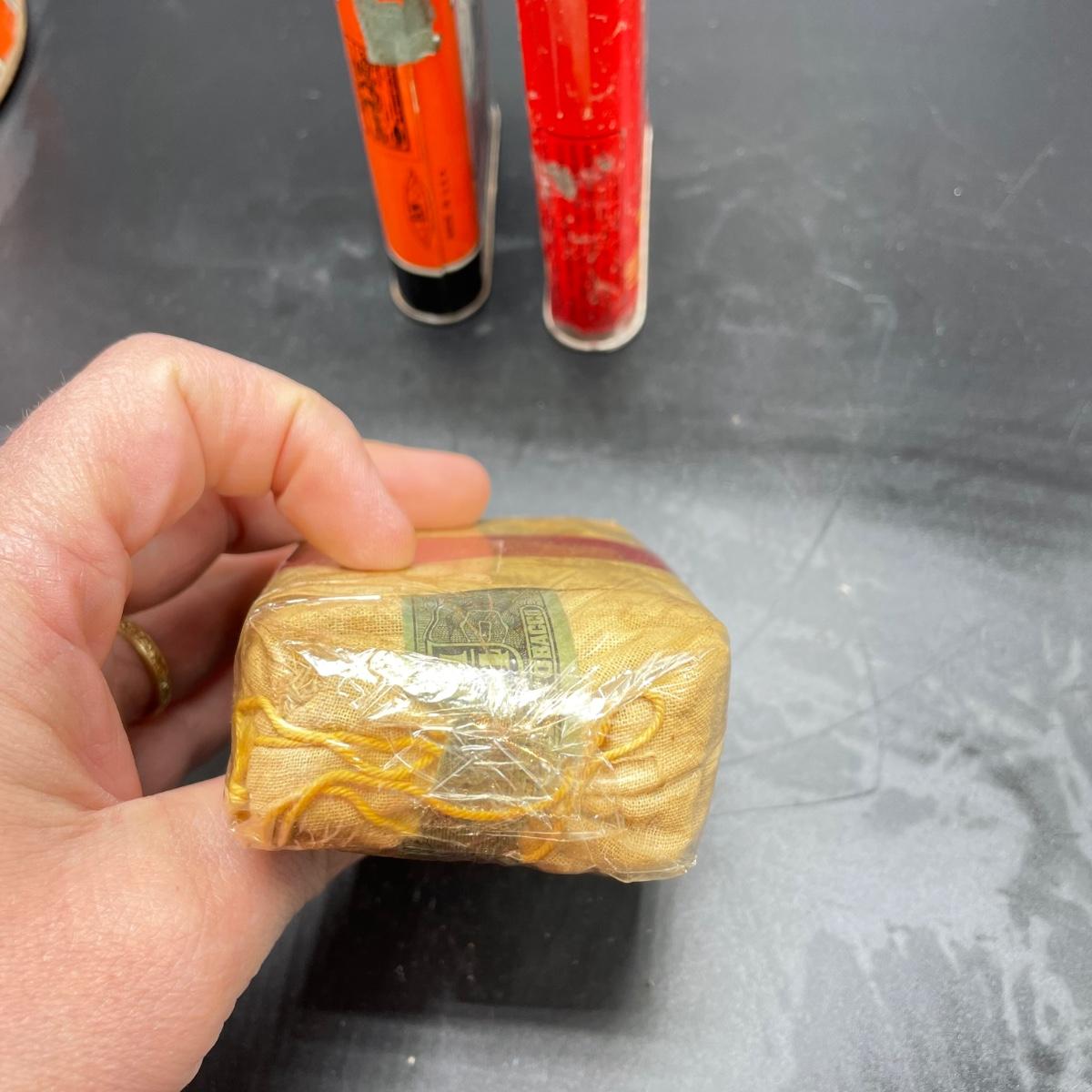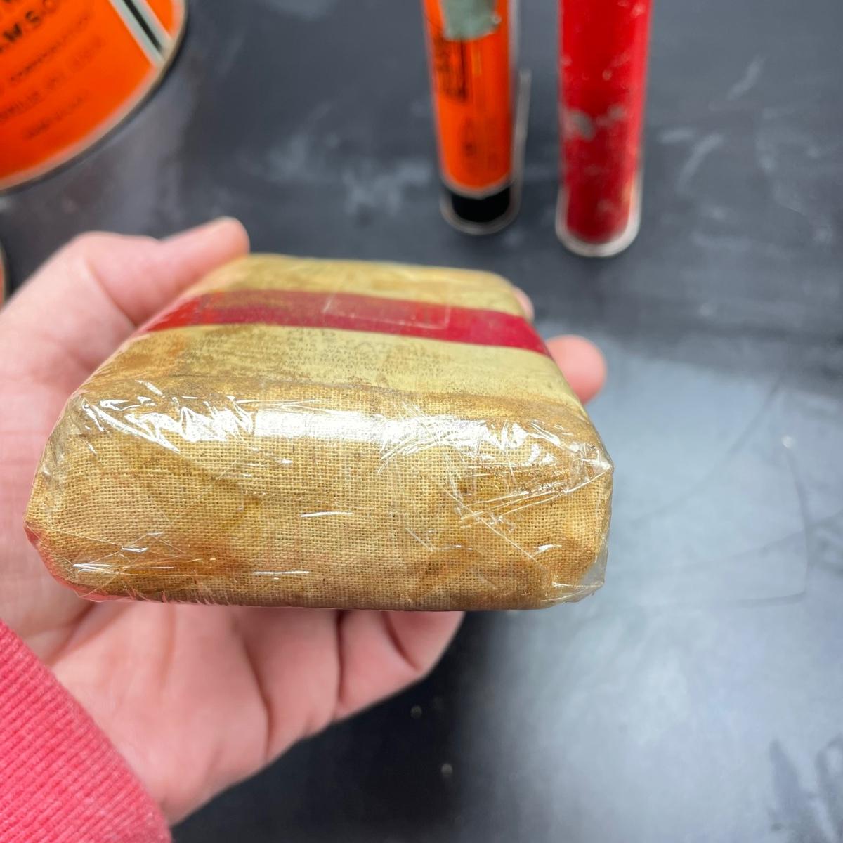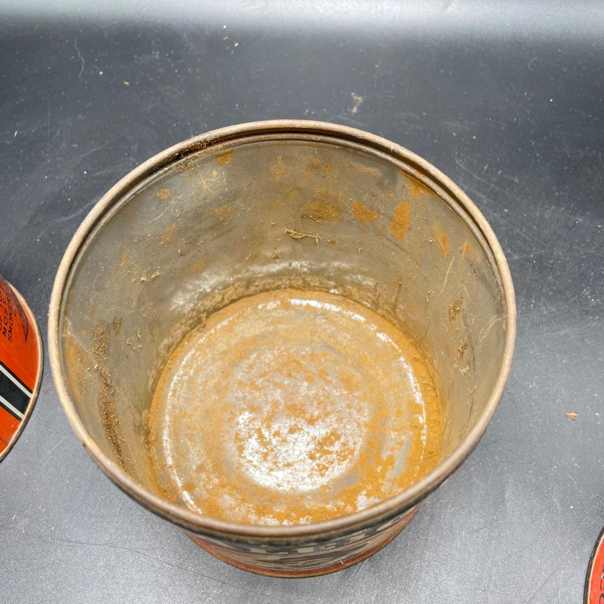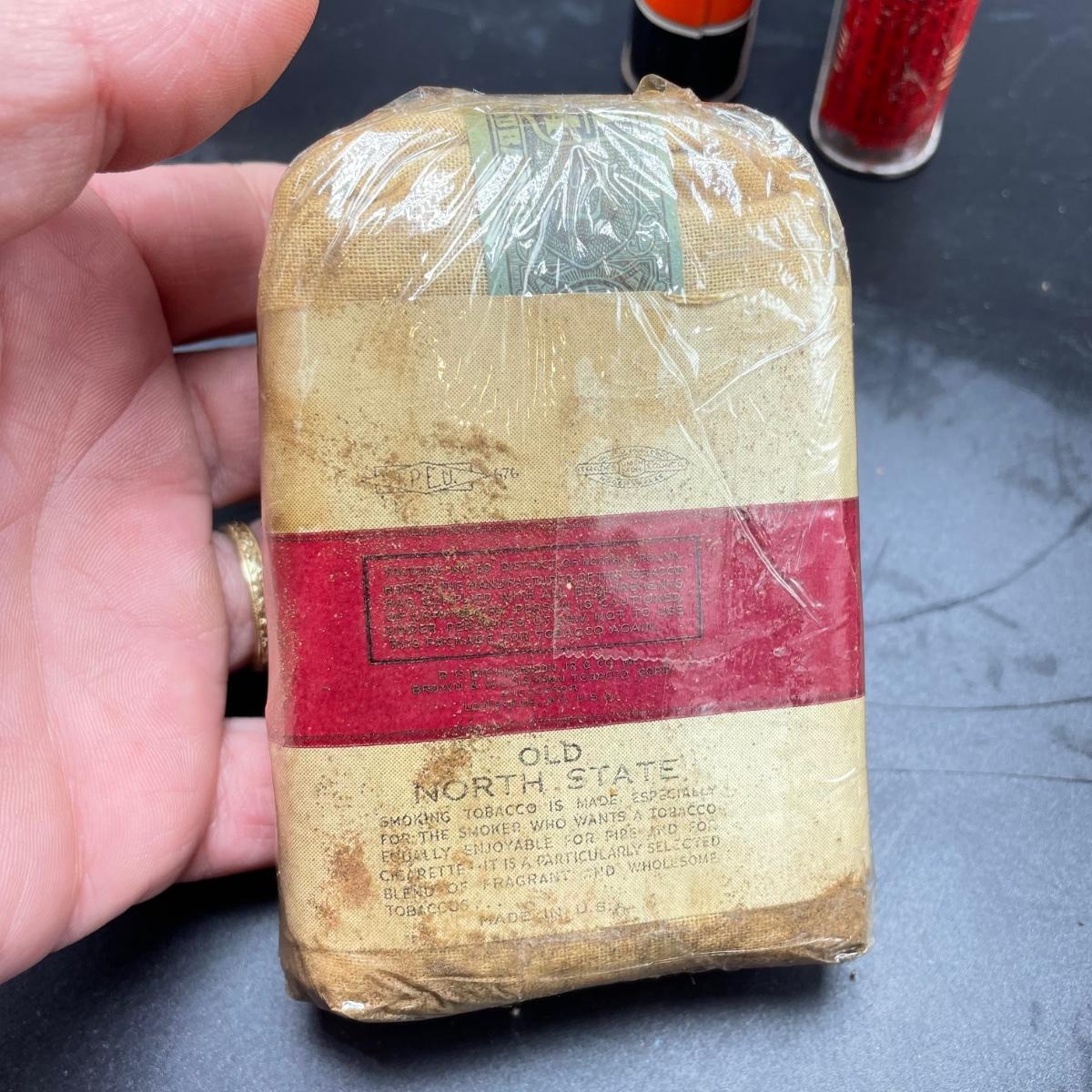 Three 14oz Sir Walter Raleigh tobacco tins, one is currently sealed shut. Lot also features two vertical pocket tins for pipe and cigarettes and a linen style bag with paper seal, wrapped in a cellophane style plastic. All items are marked Louisville, KY. See images. Shipping available.