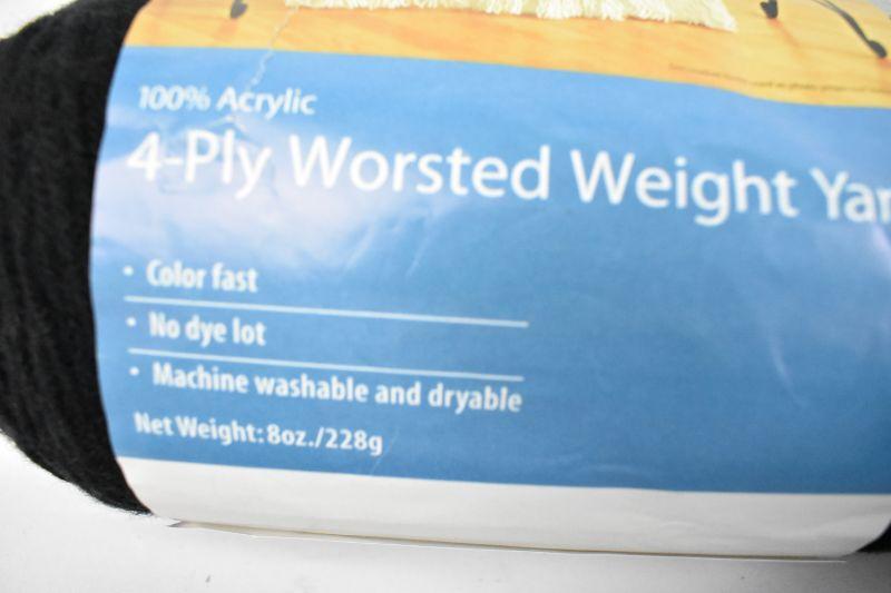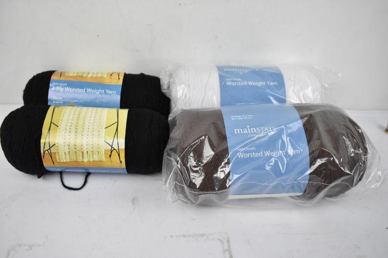 4 Skeins Worsted Weight Yarn. White, Brown, 2 Black - New
