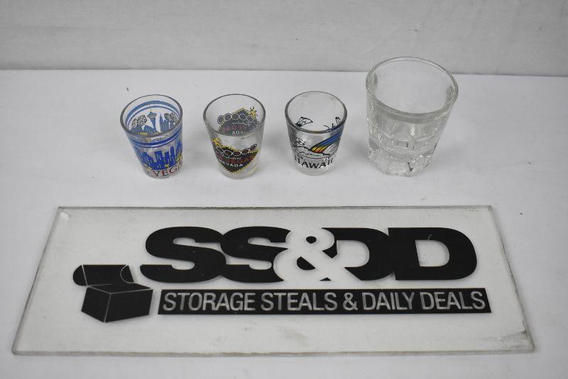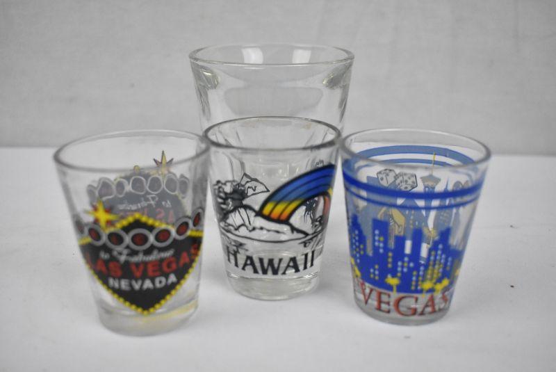4 Small Glasses: 3 Shot Glasses (Vegas & Hawaii) 7 1 Small Glass
