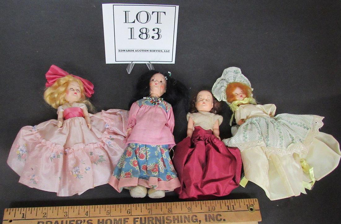 4 Small Vintage Dolls, 3 Plastic, 1 Cloth