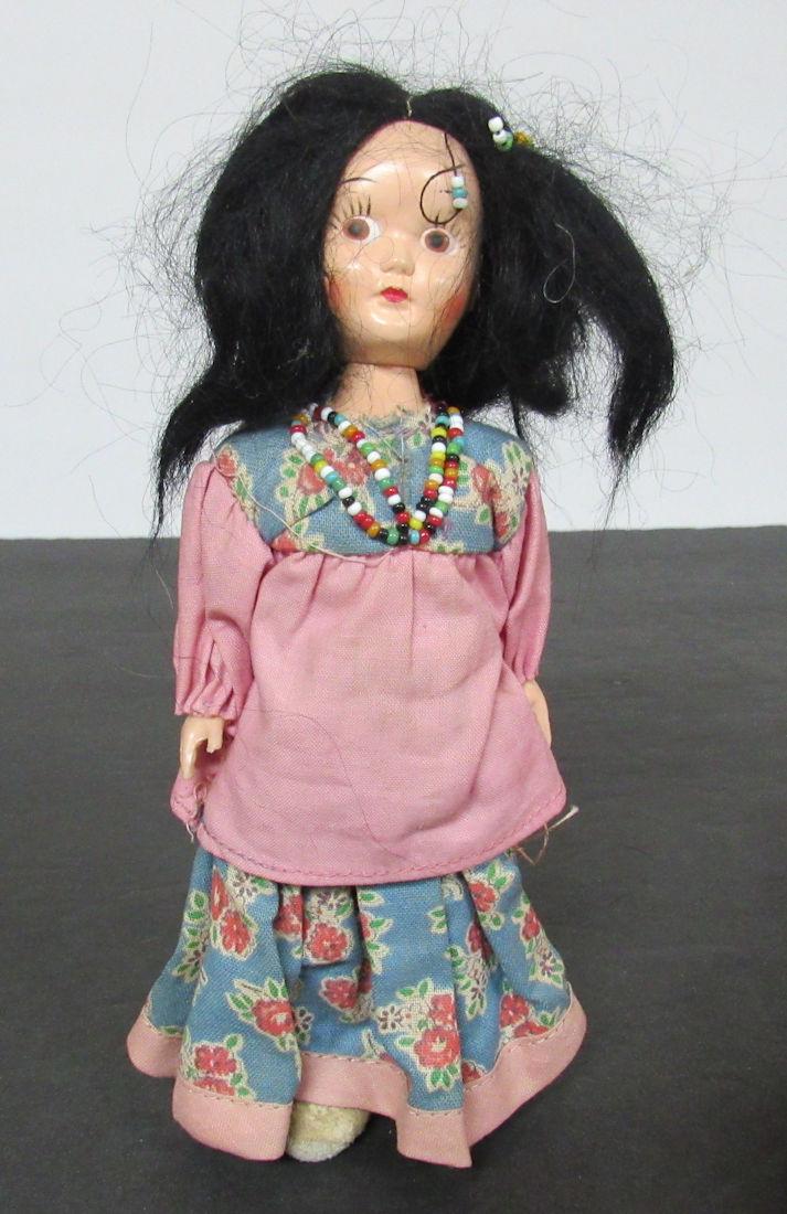 The Native American doll is fabric and is in average condition. The three hard plastic dolls are in well used condition, two are ok, one is going bald. See photos. Shipping is available at shipping cost plus $5.00 handling fee on up to 8 lots, $10.00 handling fee on 9 or more lots or two boxes.