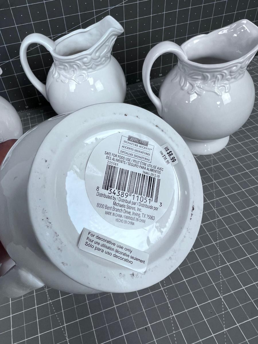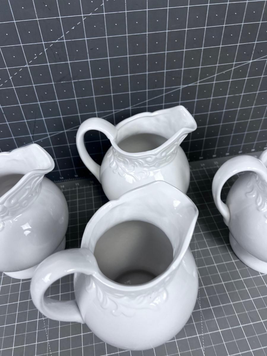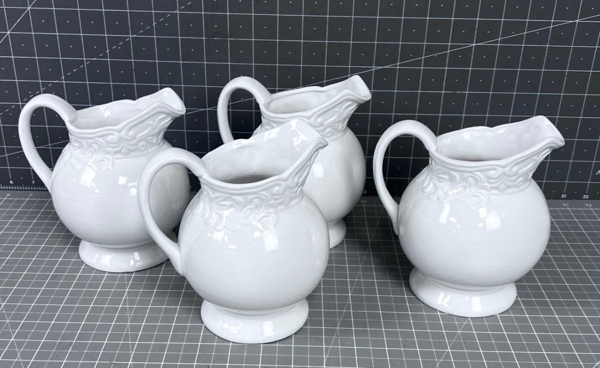 4 Small White Ceramic Pitchers, NEW