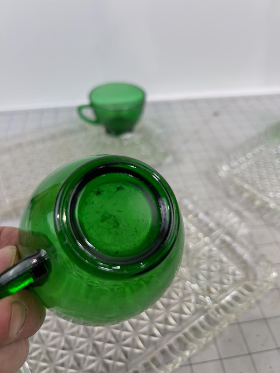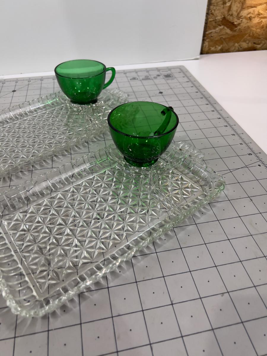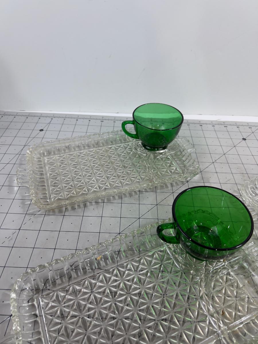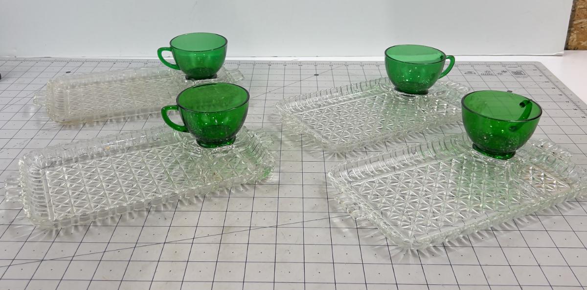 4 Snack Set Plates with 4 Green Cup by Anchor Hocking