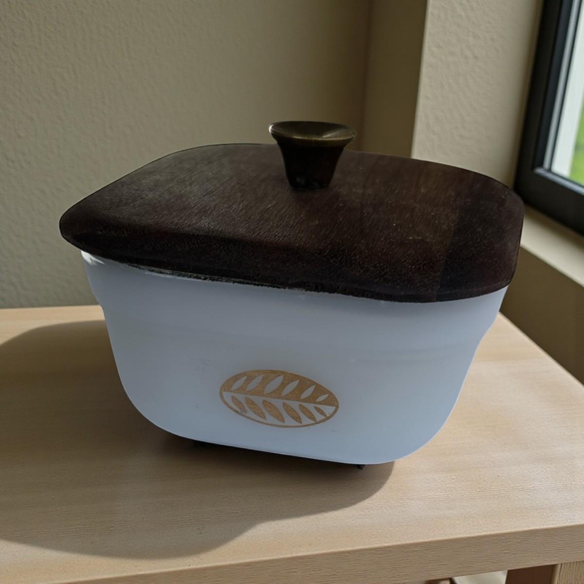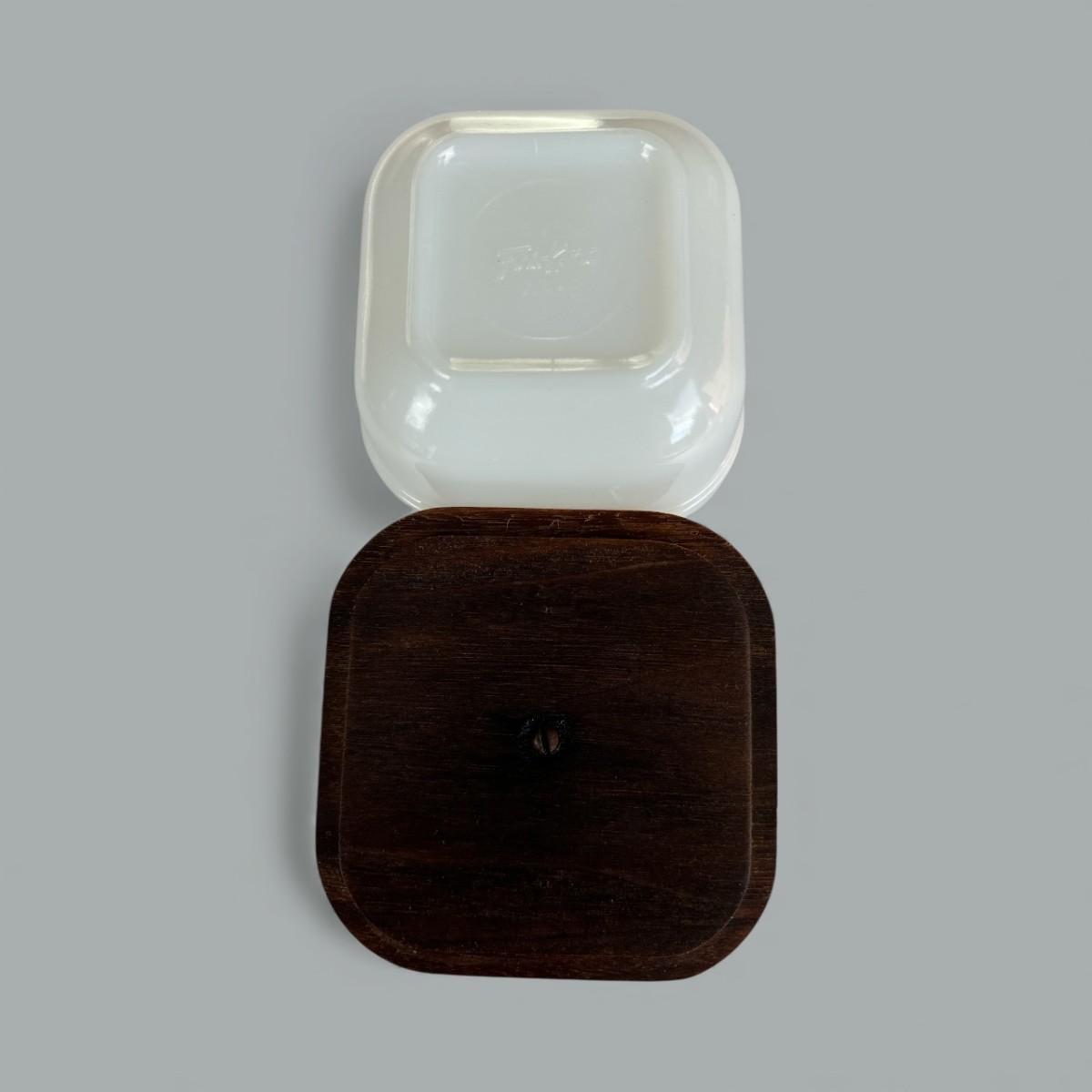 4" Square Fire King Ovenware w/ Leaf and Wood Lid