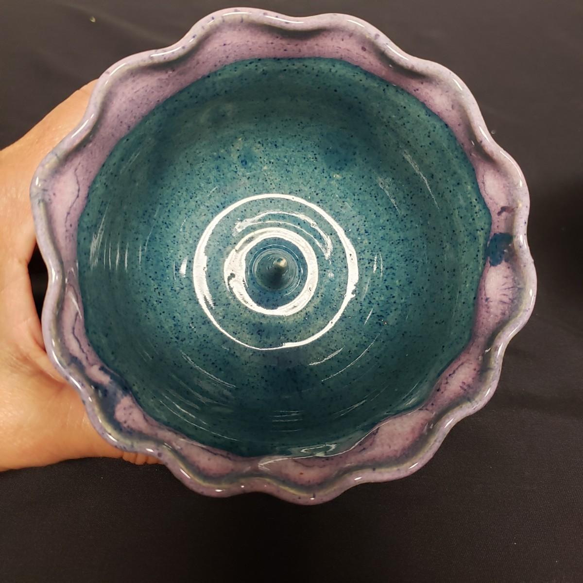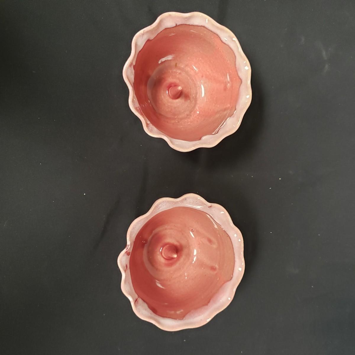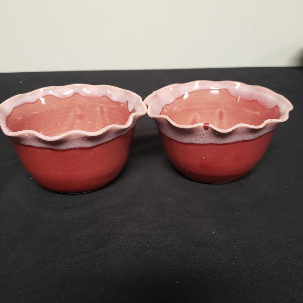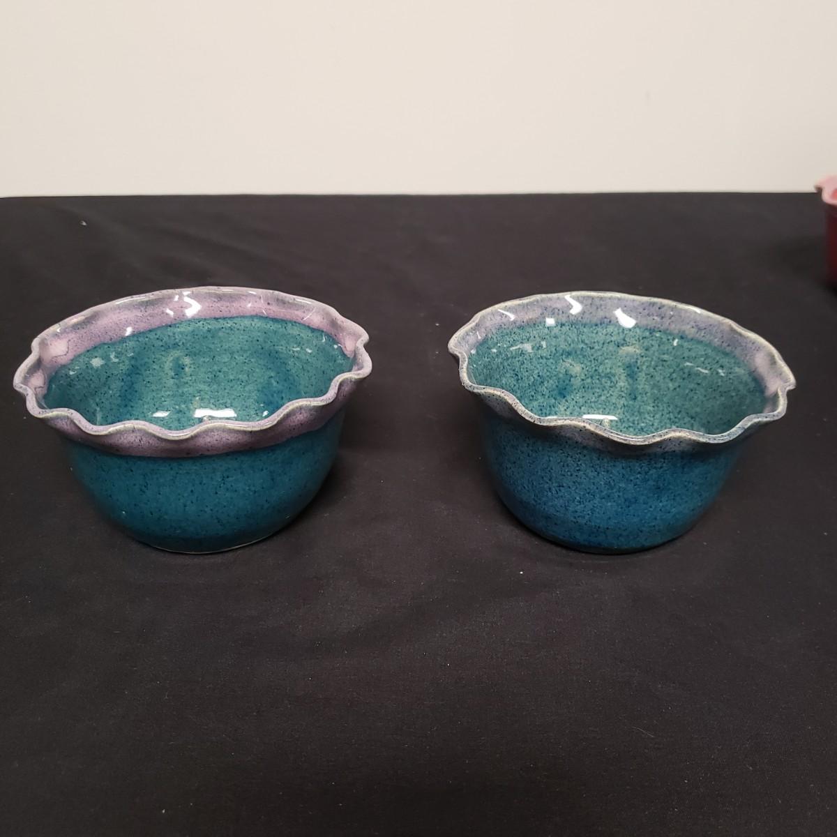 4 pottery Apple Bakers stamped by the artist John S. from Black Mountain, NC. Two have a blue-green glaze, and 2 have a red/pink glaze. The Longaberger Basket is from 1994 and perfect for picking the apples for you to use the bakers with! All items appear to be in good condition.
