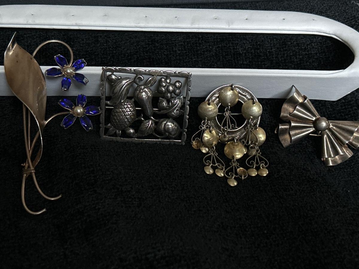 4 sterling brooches