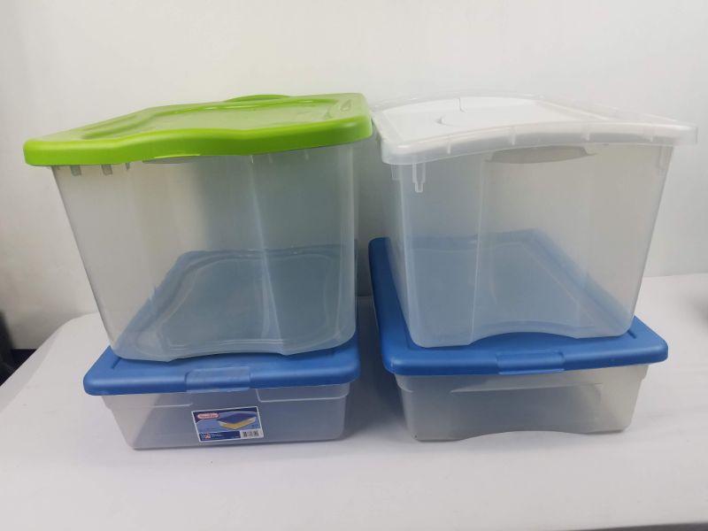 4 Storage Bins with Lids, Clear with Blue/Green/White Lids