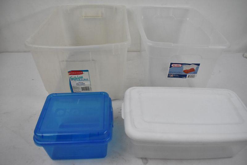 4 Storage Totes: 2 With Lids, 2 WITHOUT Lids