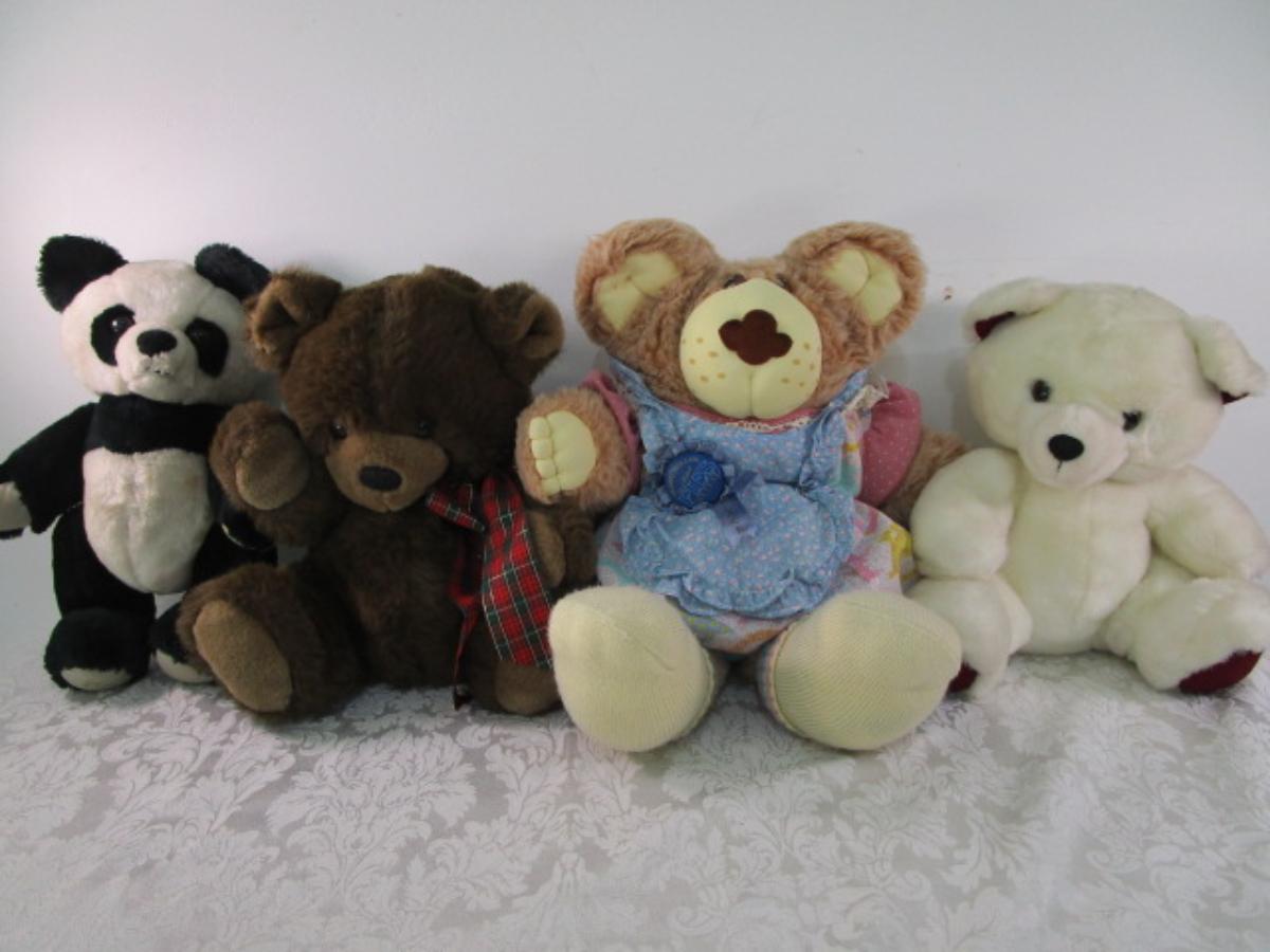 4 stuffed bears from 14" - 22" - 1 is a Fur301skins bear named Hattie