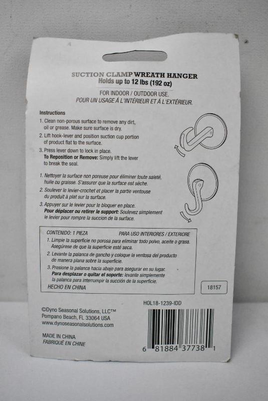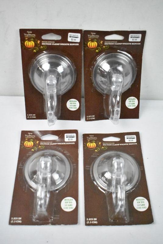 4 Suction Clamp Wreath Hangers, Each Holds up to 12 Pounds - New