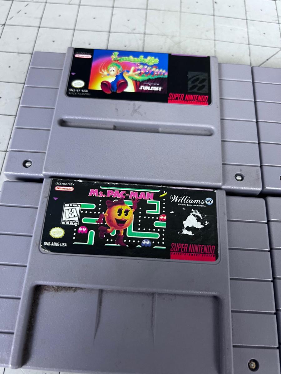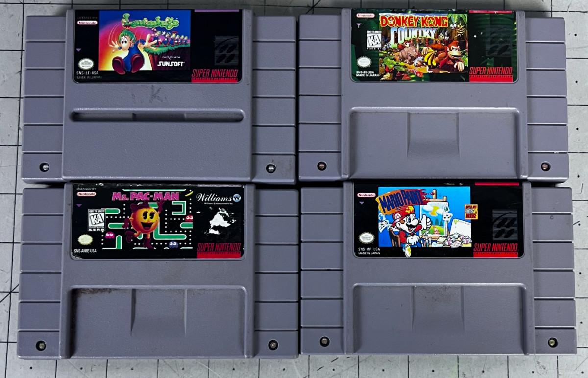(4) Super Nintendo Cartridges Mostly Donkey Kong and Ms. Pacman