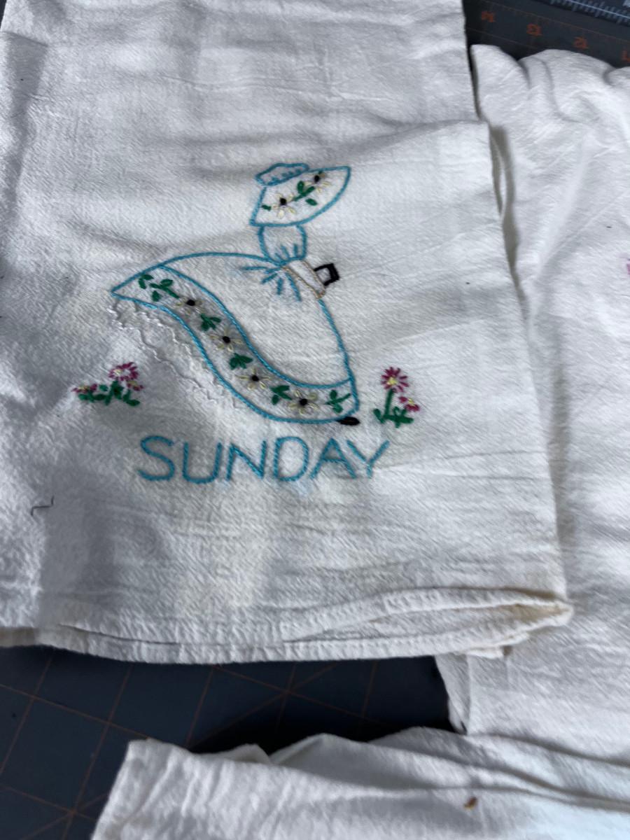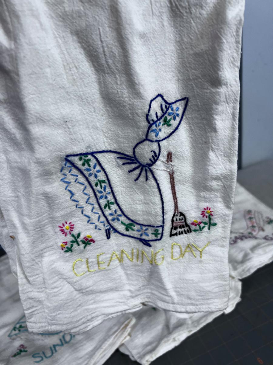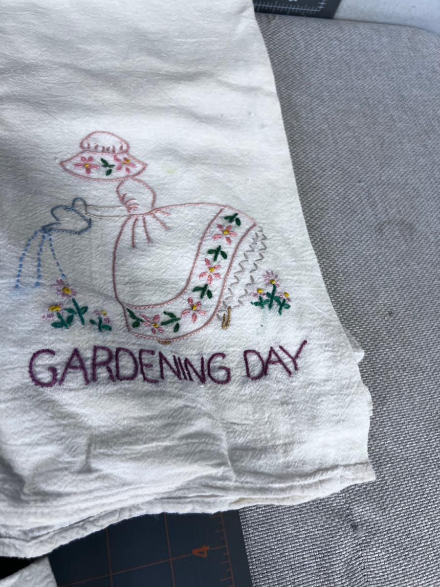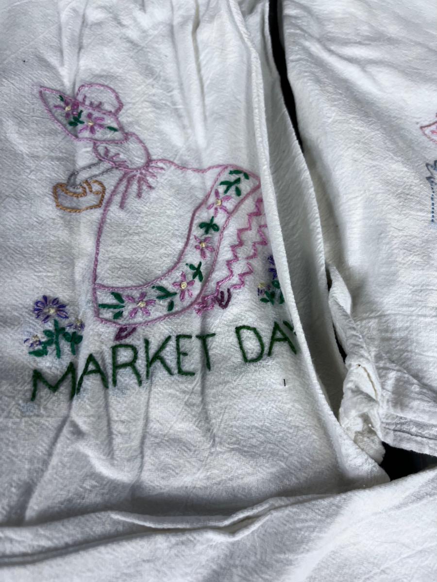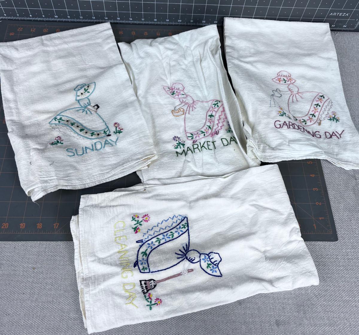 4 TEA Towels: Market, Gardening, Cleaning and Sun Day
