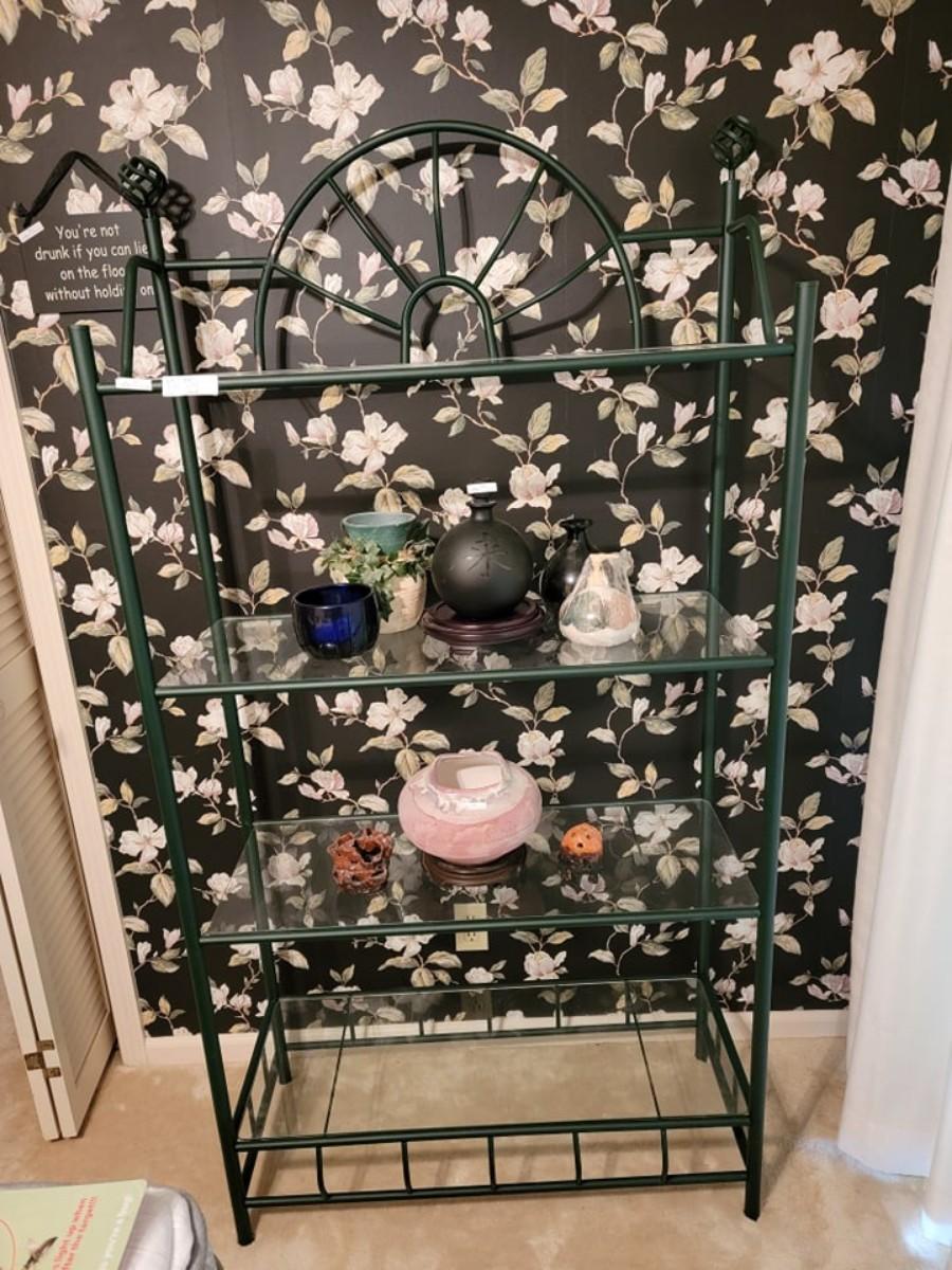 4 tier glass shelf metal frame storage display rack; items NOT included