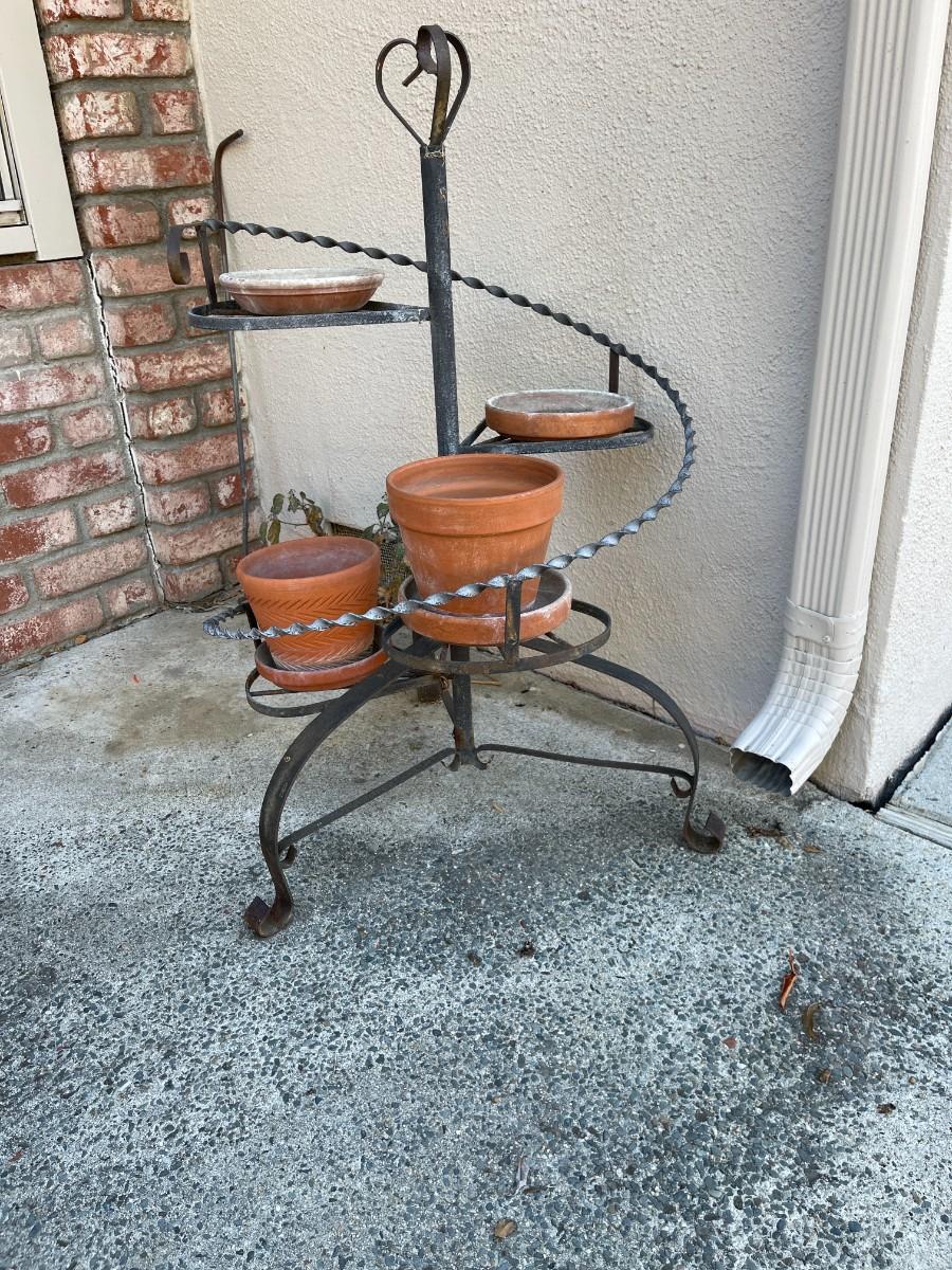 4 Tier Metal Spiral Plant Stand with Terra Cotta Planters, Single Metal Plant Stand
