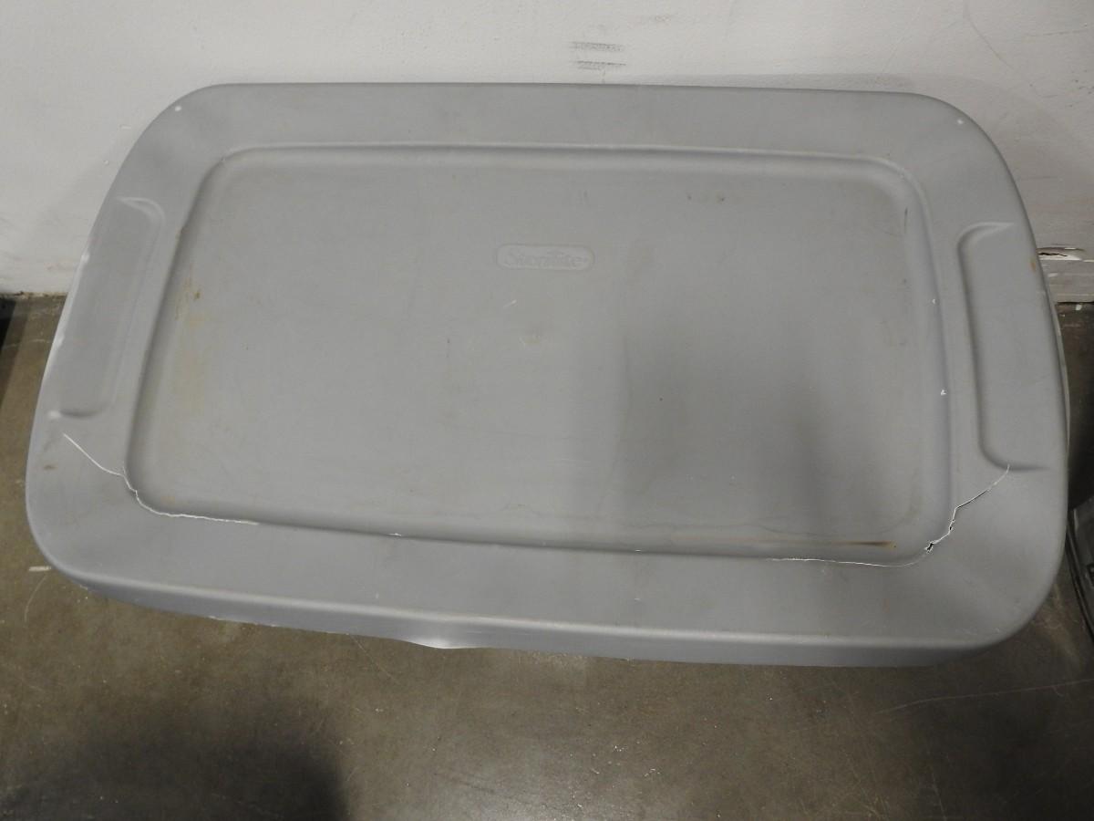 4 Totes, 2 With Lids, 2 NO Lids: Sterilite, Roughneck, Gray Tote  Lid Has Cracks
